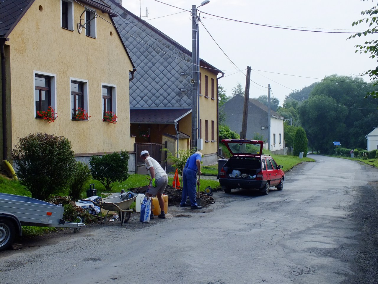 Oprava kanálů a cest na návsi v Mutěníně