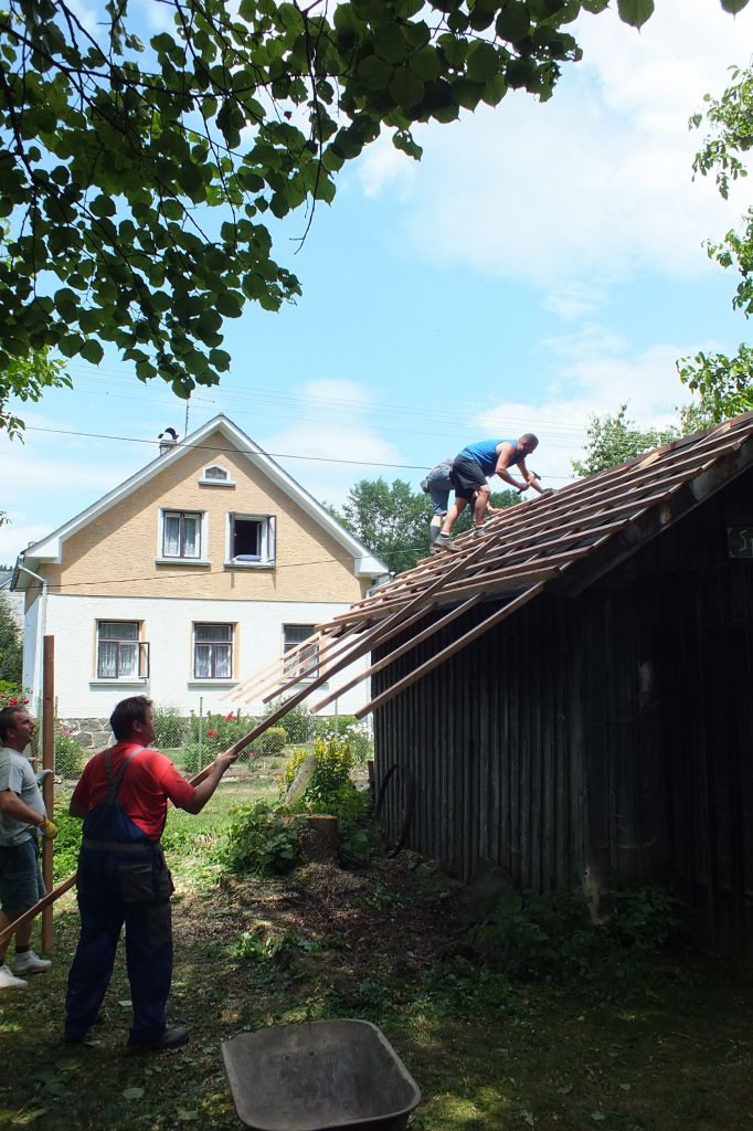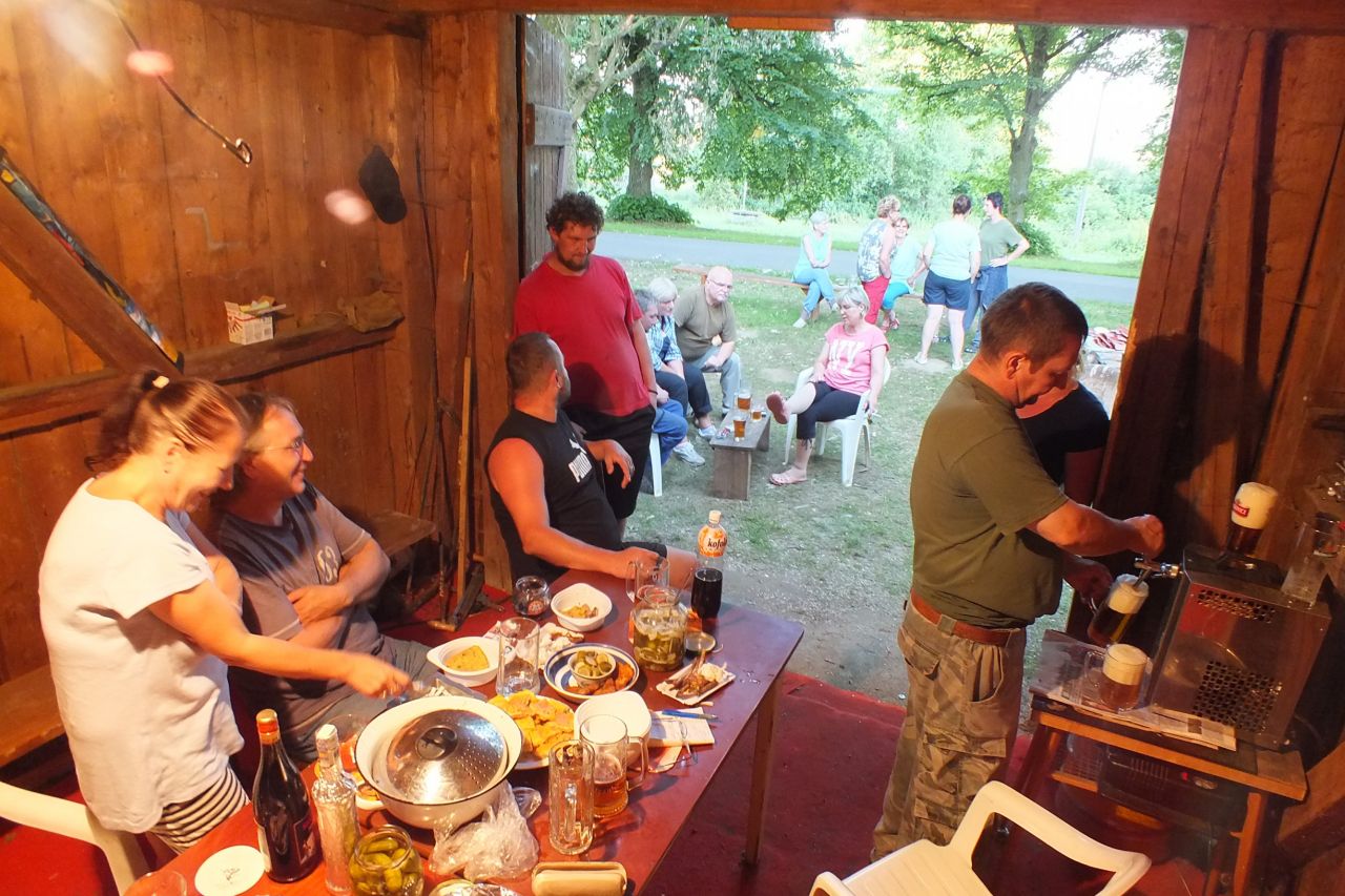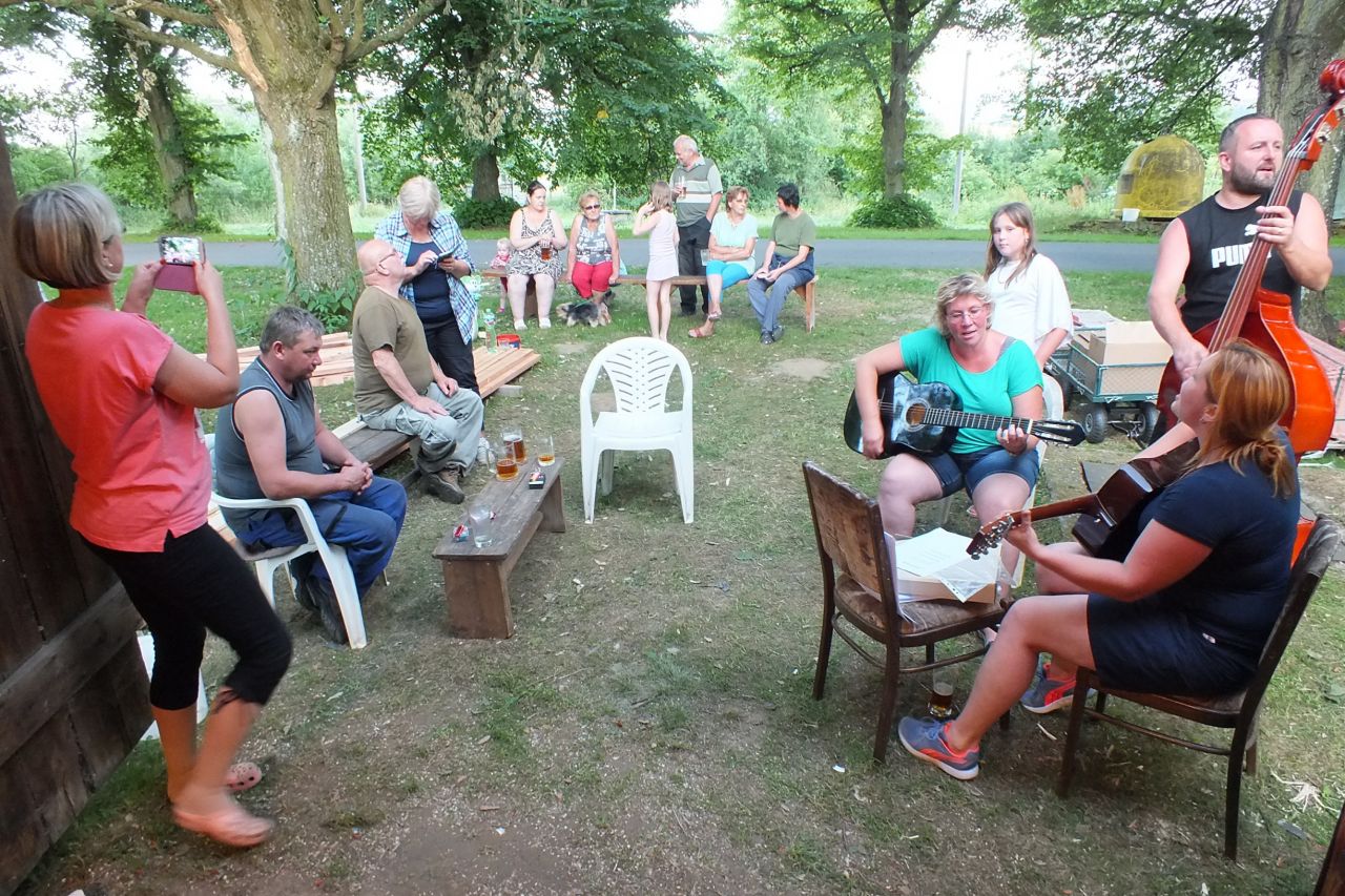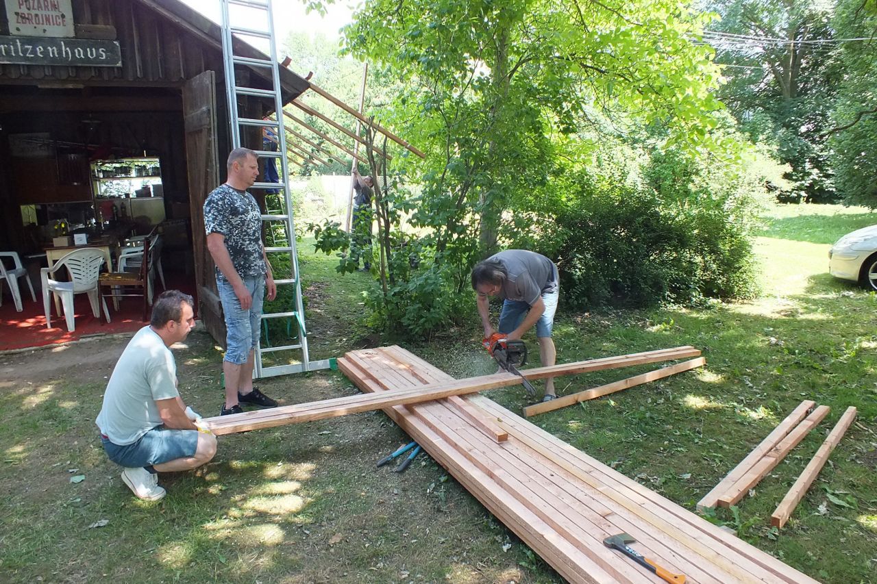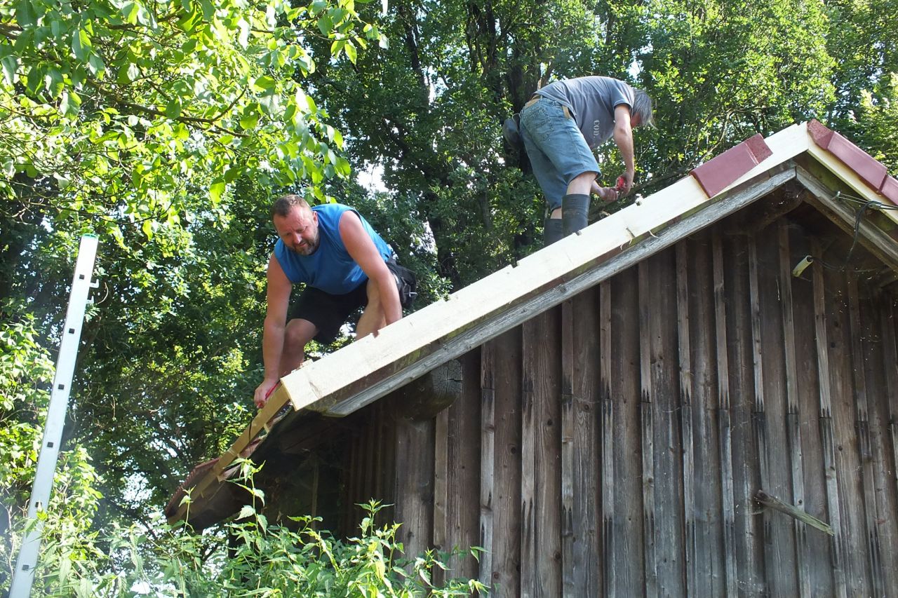 V sobotu 4.7. za podpory místních obyvatel a obecního úřadu v Mutěníně, byla provedena výměna střešní krytiny na bývalé hasičské zbrojnici ve Starém Kramolíně. Na hřeben střechy byl umístěn pozlacený kohout, dar p. Jodase (děkujeme), který od nynějška bývalou zbrojničku střeží. Střecha byla dokončena za jediný den. V podvečerních hodinách se celá vesnice sešla a v doprovodu dobré muziky se oslavilo zdařilé dílo. Překvapením pro všechny přítomné, bylo předání sklenic na pivo od rodiny Prenerů s nápisem " Starý Kramolín, číslo domu a Spritzenhaus (hasičská zbrojnice).