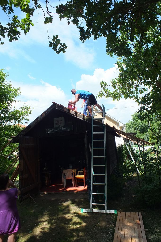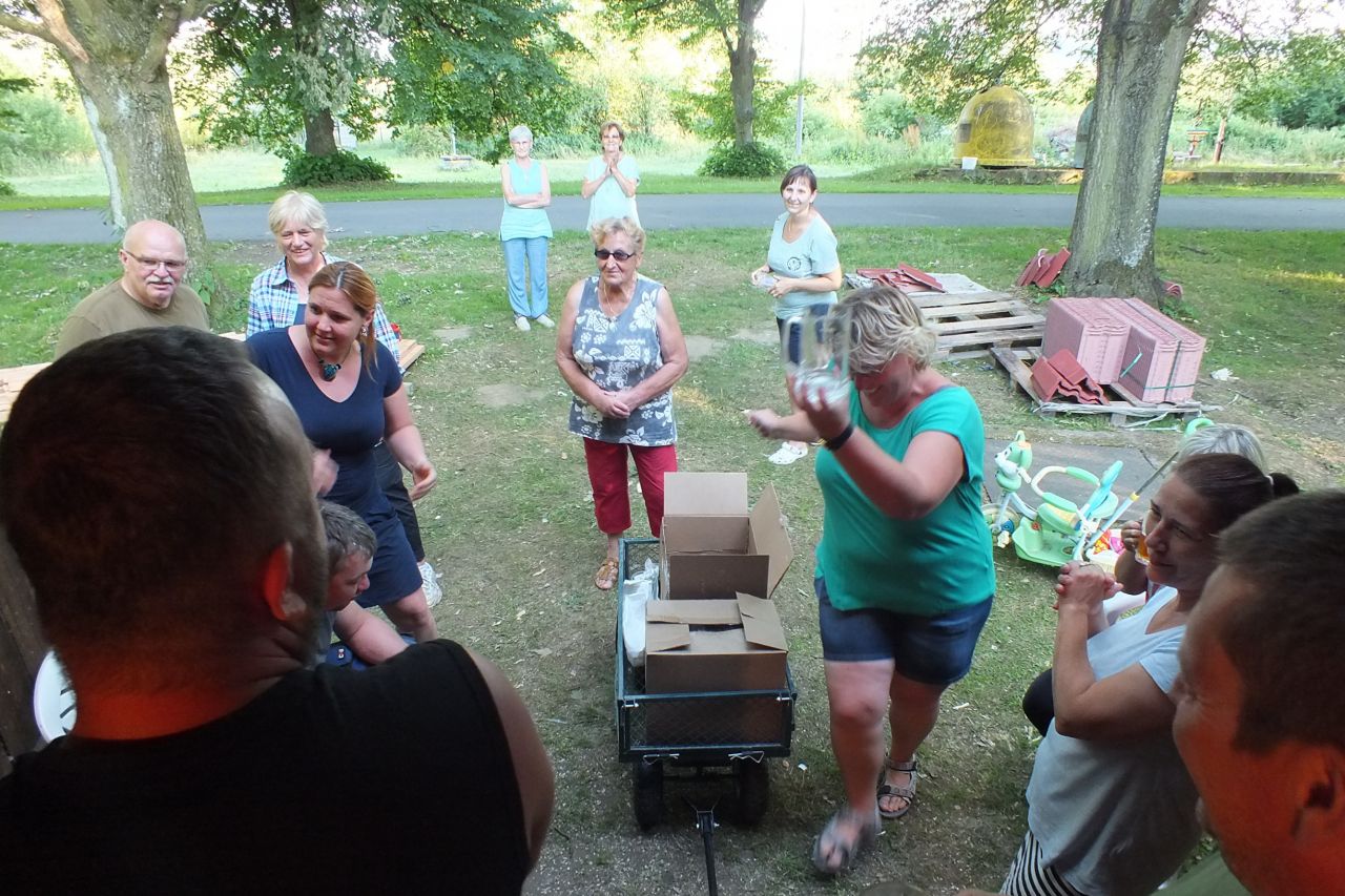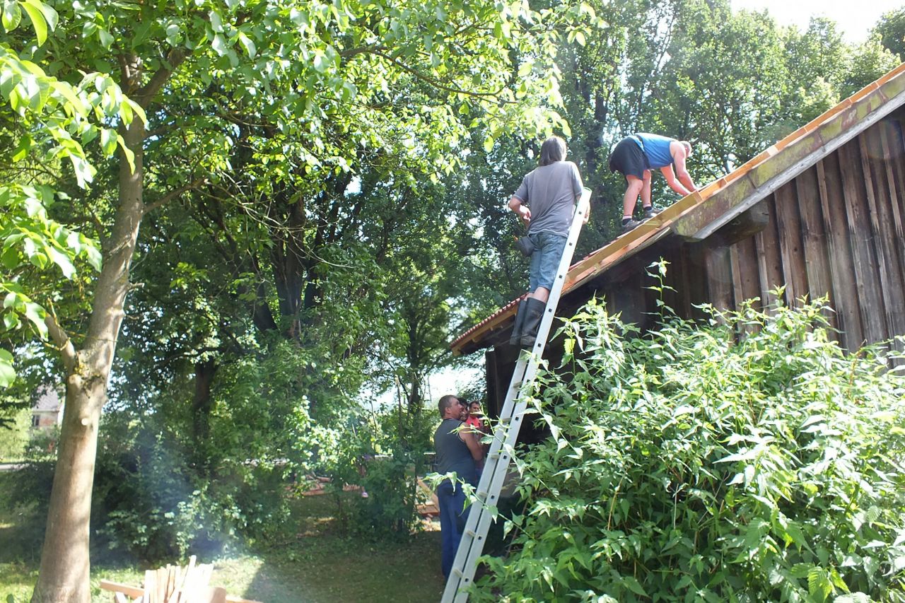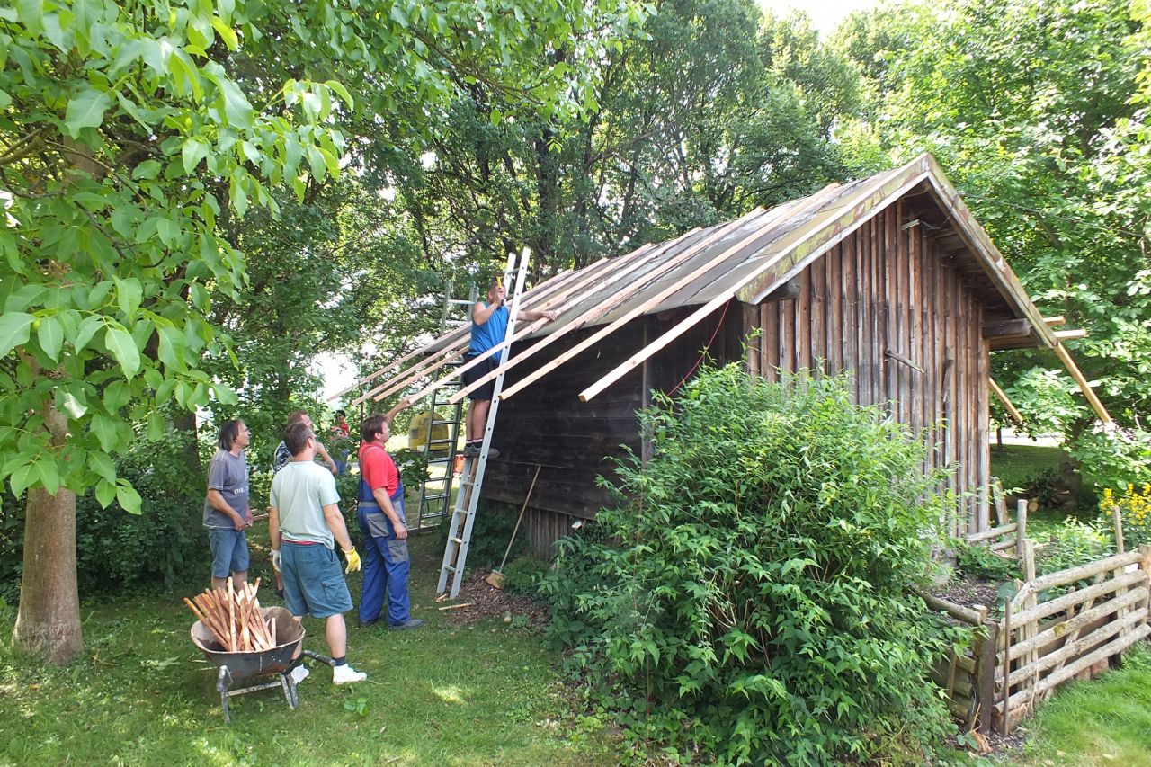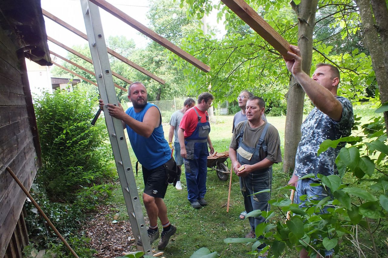 V sobotu 4.7. za podpory místních obyvatel a obecního úřadu v Mutěníně, byla provedena výměna střešní krytiny na bývalé hasičské zbrojnici ve Starém Kramolíně. Na hřeben střechy byl umístěn pozlacený kohout, dar p. Jodase (děkujeme), který od nynějška bývalou zbrojničku střeží. Střecha byla dokončena za jediný den. V podvečerních hodinách se celá vesnice sešla a v doprovodu dobré muziky se oslavilo zdařilé dílo. Překvapením pro všechny přítomné, bylo předání sklenic na pivo od rodiny Prenerů s nápisem " Starý Kramolín, číslo domu a Spritzenhaus (hasičská zbrojnice).