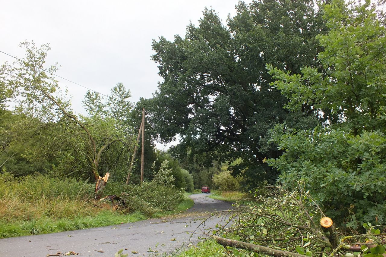 V pátek 18.8. po 21.00 hodině se prohnala Mutěnínem bouřka a silný vítr, který napáchal nemalé škody na majetku. Nejvíce popadaných stromů bylo na silnici vedoucí do Hostouně u sv. Jana Nepomuckého, ale i na cestě na Drahotín a v zahradách. Zdemolován byl i stan připravený na svatební hostinu. Stejná situace byla i na Ostrově a ve Starém Kramolíně. Děkujeme Mutěnínským dobrovolným hasičům, kteří ve spolupráci s hasičskými jednotkami z Hostouně a Poběžovic zprůjezdnili v nočních hodinách veškeré cesty v obci a okolí. V letošním roce je to již druhá živelná pohroma, která zasáhla naší obec.