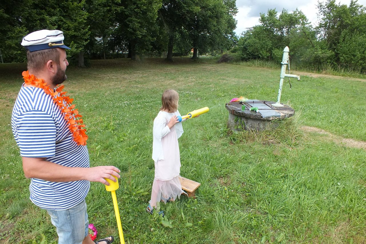 V sobotu 1.července od 15.00 hod. proběhla ve Starém Kramolíně akce pro děti "Vítání prázdnin po vodnicku ". Na uvítanou nám začalo pršet, ale poté se počasí umoudřilo a mladí vodníci a hastrmanky se vydali na stopovačku k rybníku. Po návratu probíhaly různé vodnické soutěže. Odměnou bylo dobré počasí, nálada, ale i sladkosti pro naší vodnickou omladinu. Nakonec ani doprovod nezůstal na suchu.