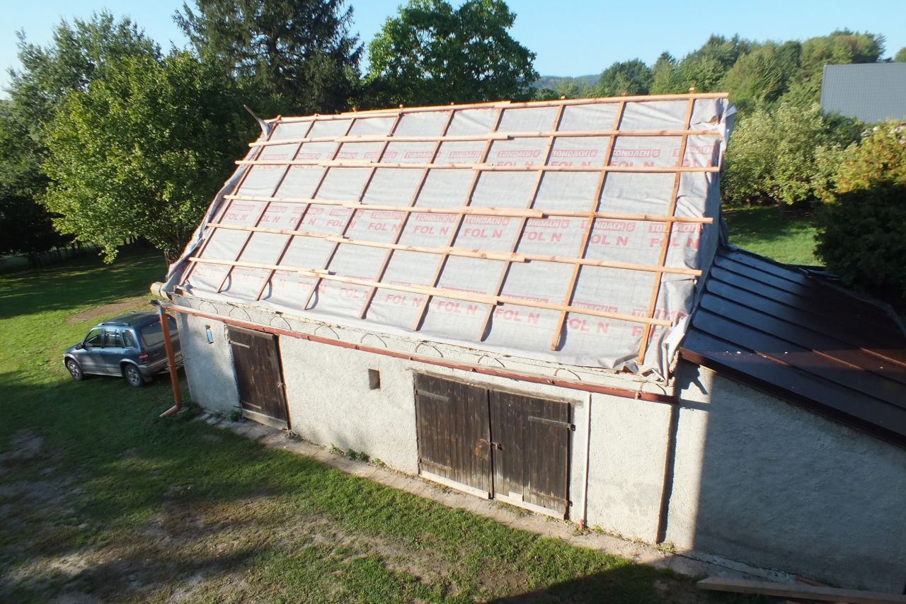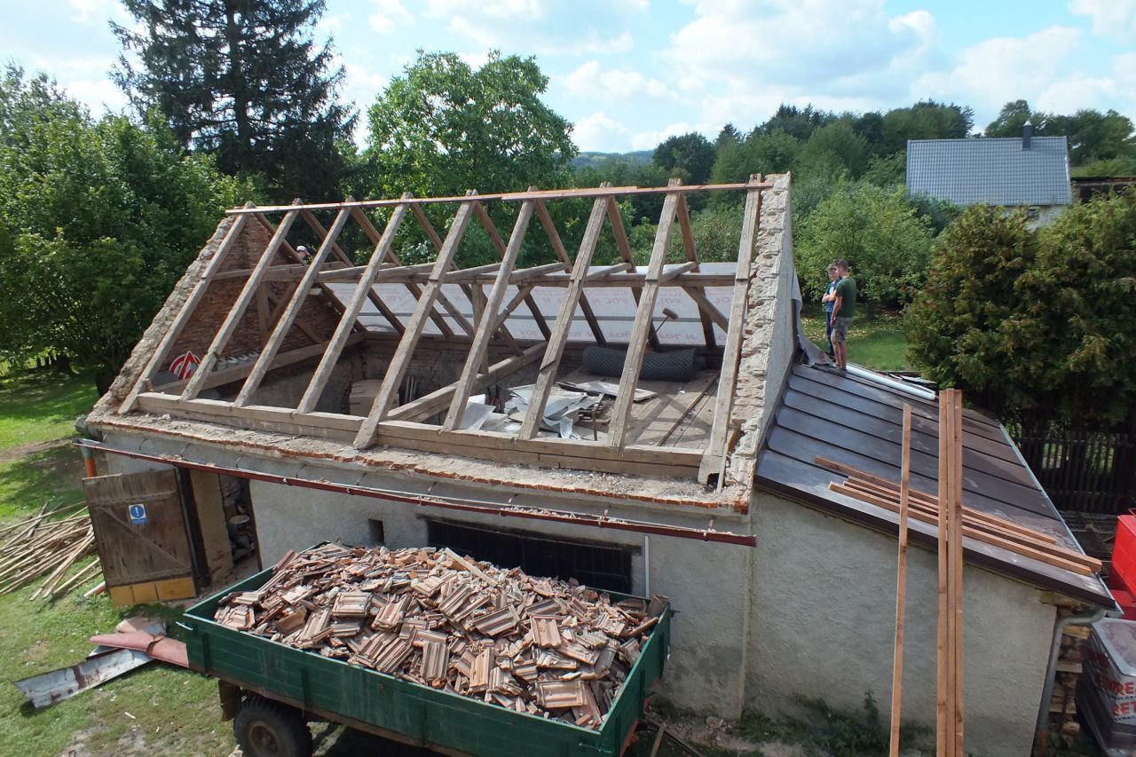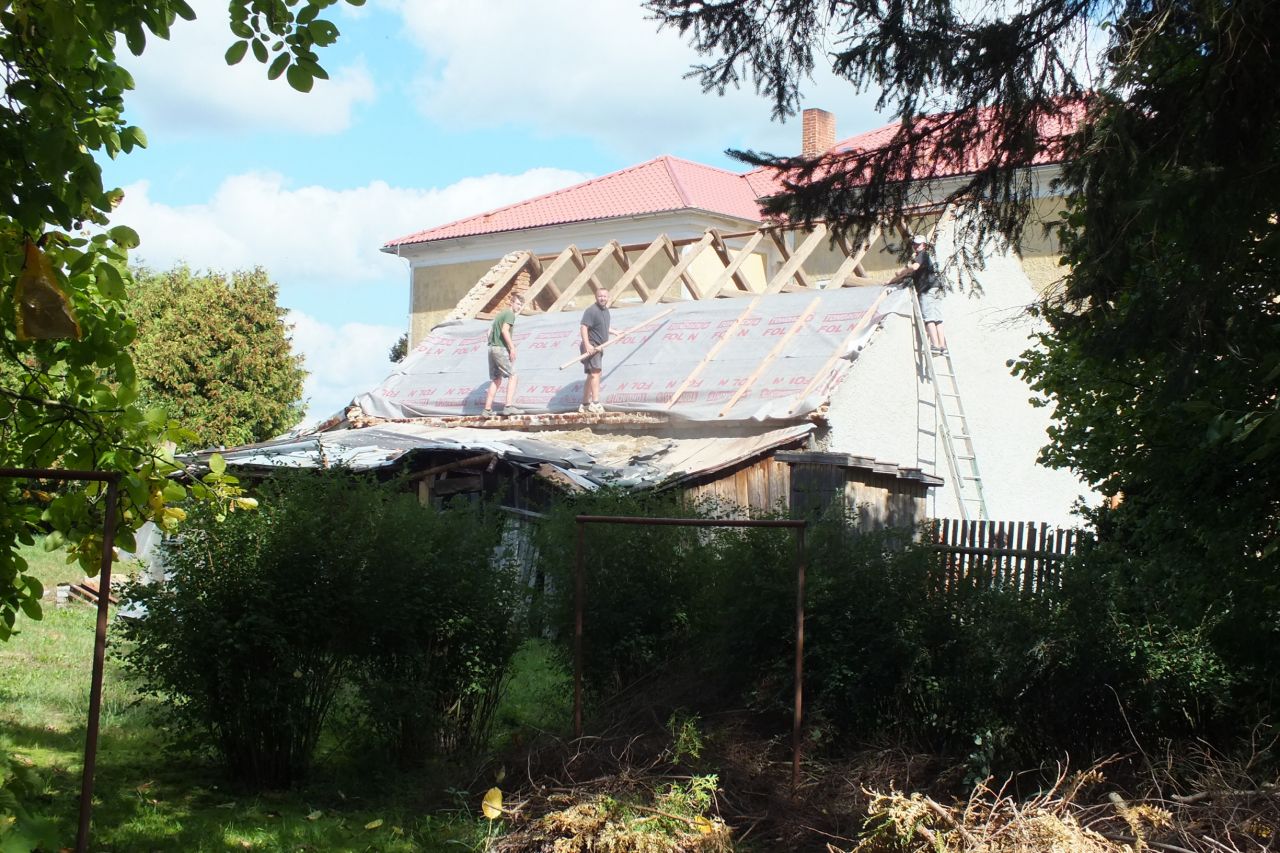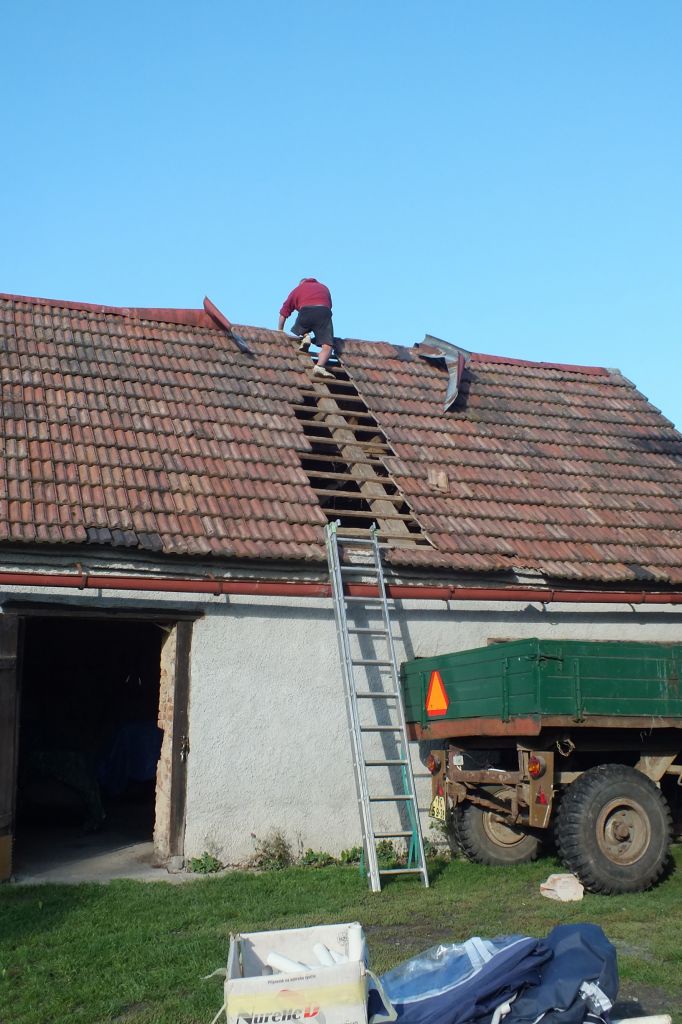V minulém týdnu byly zahájeny práce na nové střešní krytině na kolně OÚ. Kolna byla postavena v roce 1906 a postupně procházela několika opravami (omítnutí,střešní krytina). Bohužel, čas se zastavit nedá a pálená taška vše nevydrží. Do kolny začalo zatékat, proto bude vyměněn nahnilý trám a položena nová střešní krytina. Kolna poté může sloužit svému účelu po další desetiletí.