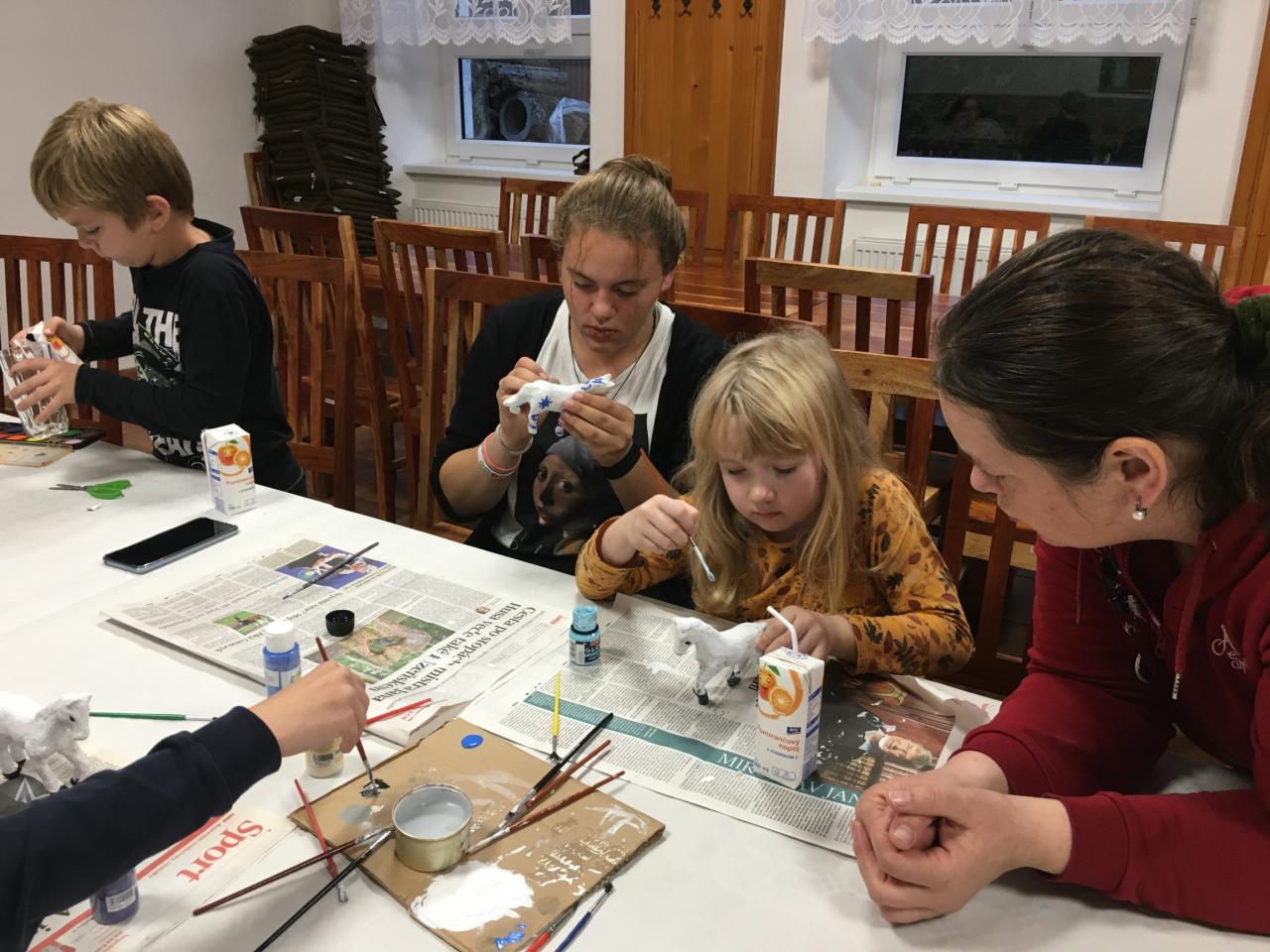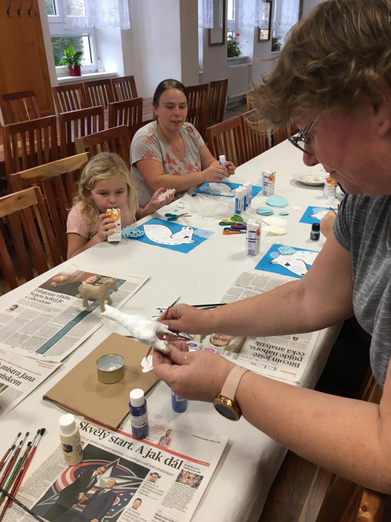 V sobotu 5.11. od 15.00 hod. se uskutečnilo na sále OÚ "Svatomartinské výtvarné tvoření". Nejenom děti, ale i doprovod se pustil do vystřihování, lepení a barvení svatomartinských výtvorů. Po setmění byl pro děti připraven oheň a opékání klobás.