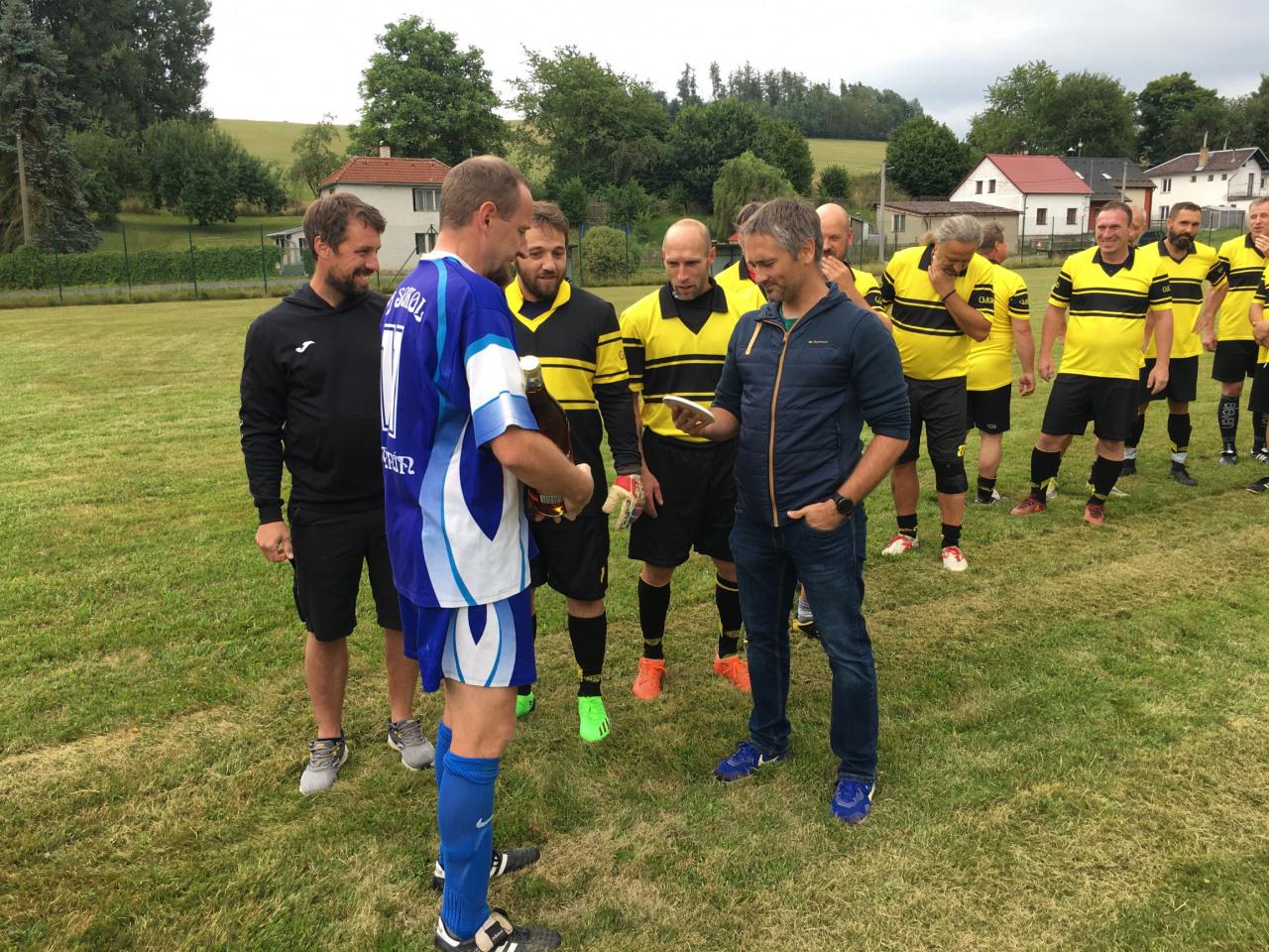 U této příležitosti si naši oslavenci pozvali SK Poběžovice, aby prověřili jejich um, ale i fyzičku při výročním fotbalovém utkání.