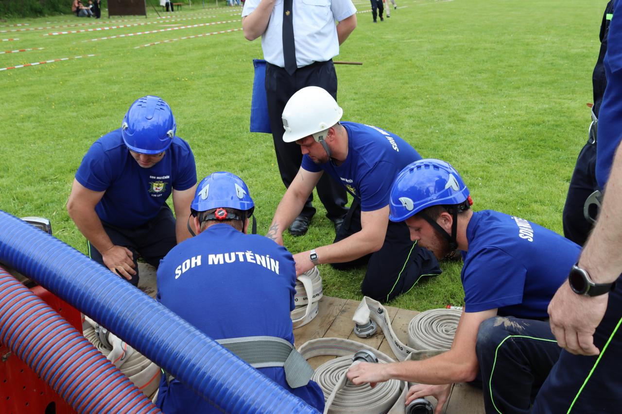 Vše začalo krátce po 13 hodině slavnostním nástupem jednotek SDH. Zde starosta okrsku pan Lešek s velitelem SDH v Mutěníně panem Pekárem přivítali přítomné a popřáli všem soutěžícím hodně úspěchů. Následovala samotná soutěž, která začala štafetou. Jednotky předvedly svoji rychlost v běhu, přes překážky, ale i zručnost, při další disciplíně, a to v útoku. (Zde se běžela dvě kola a lepší čas se sčítá s časem se štafety.) A výsledky?