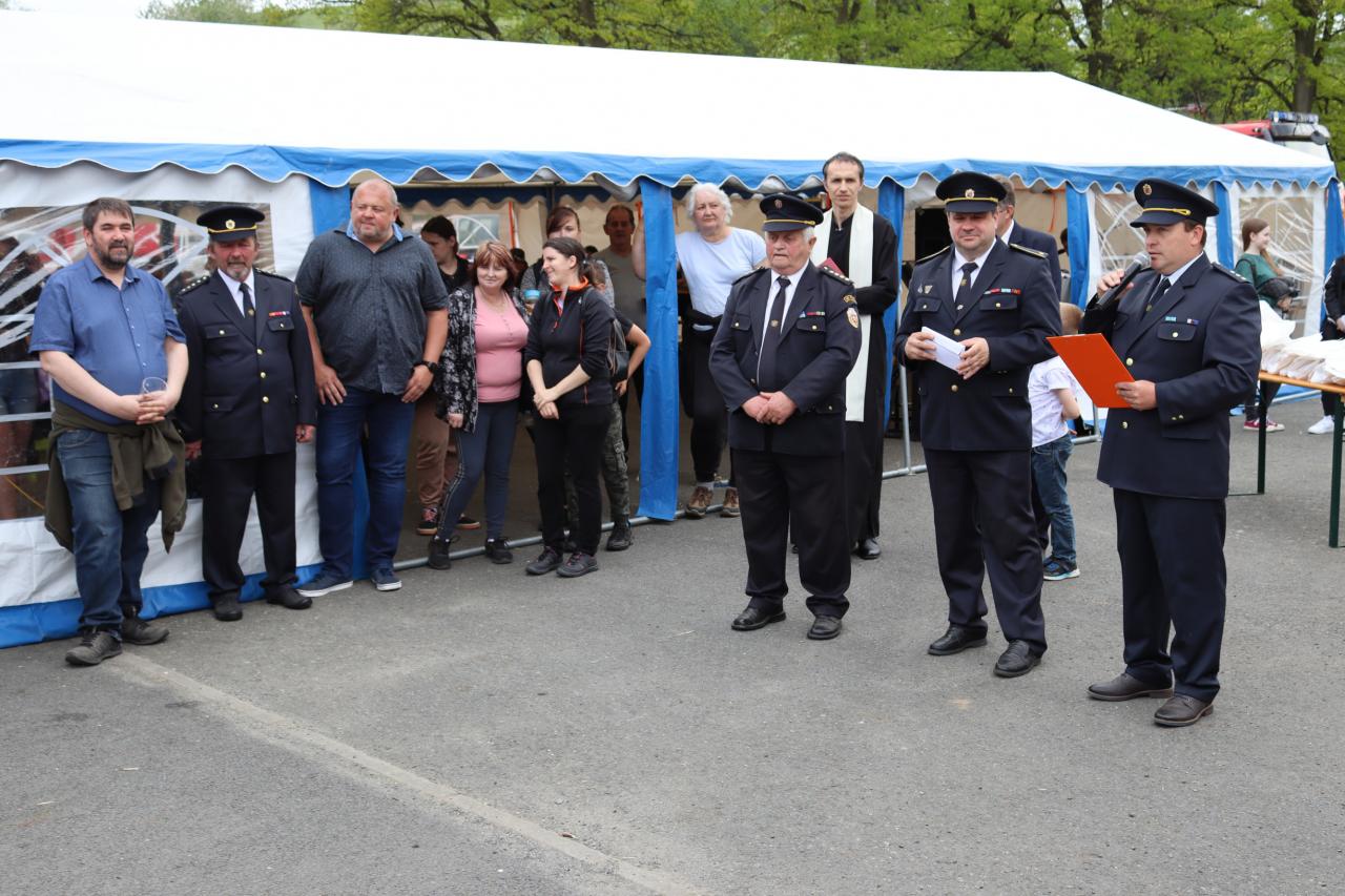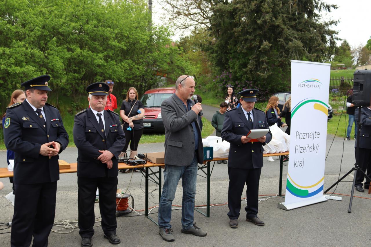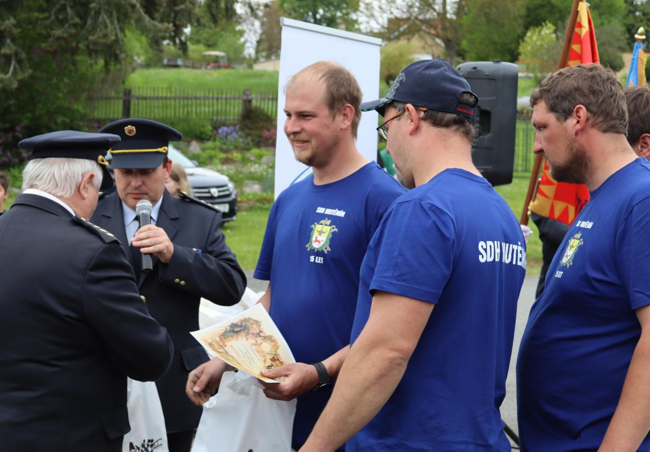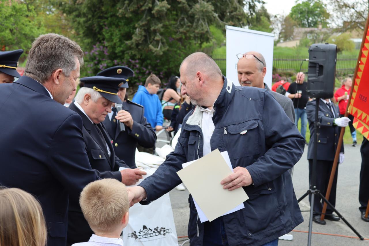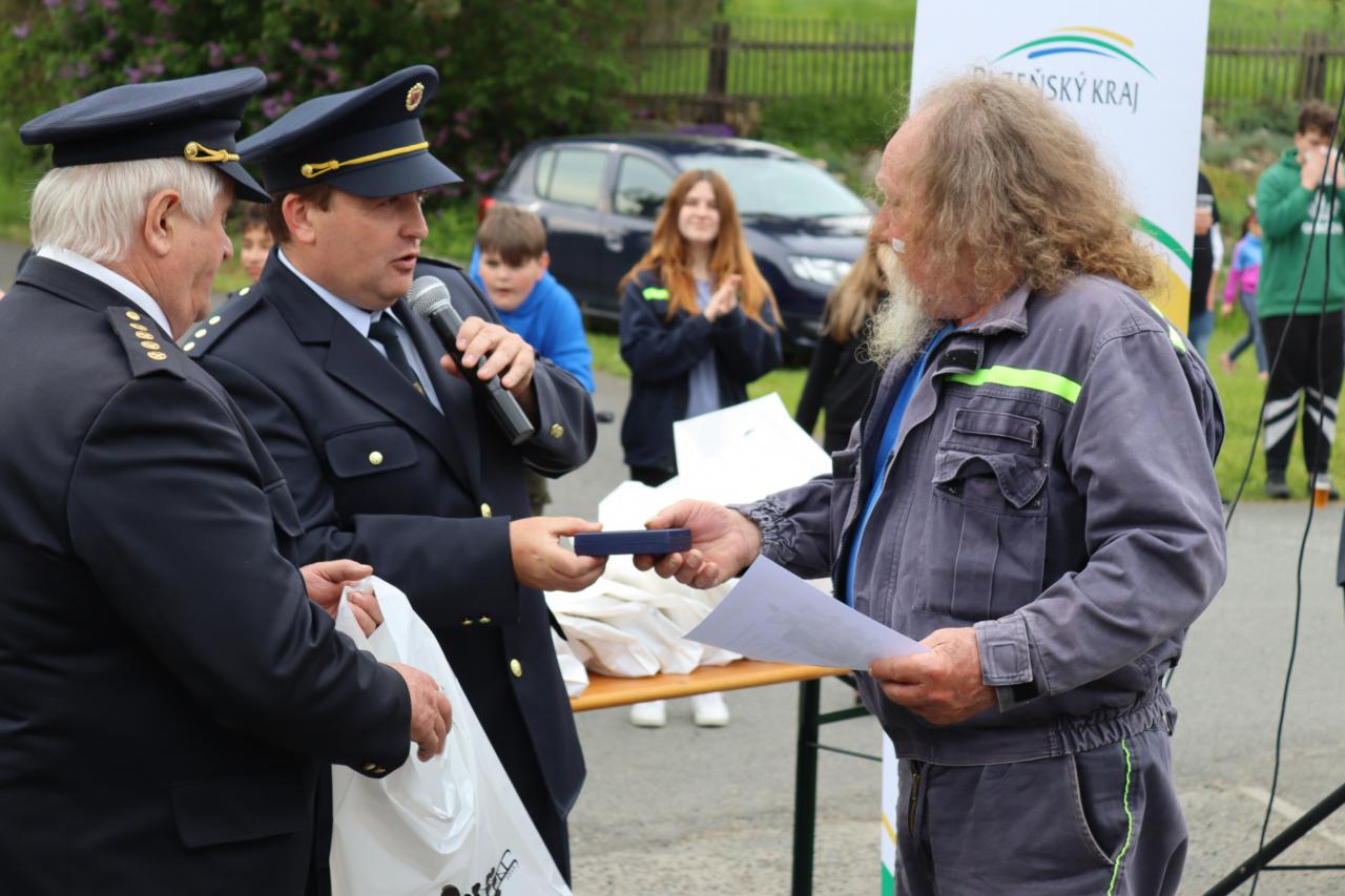 Starosta okrsku, pan Lešek se ujal slova a vyzval velitele SDH Mutěníně pana P. Pekára k předání ocenění.