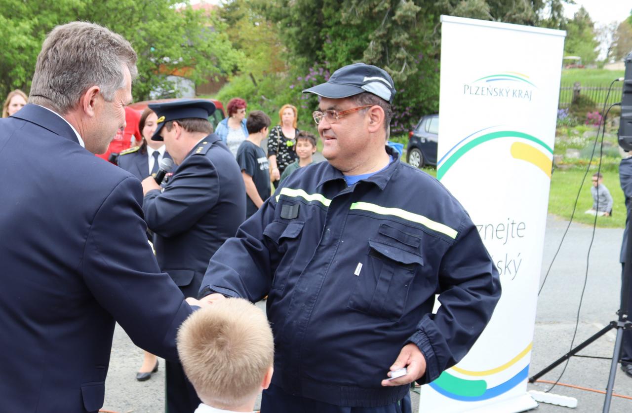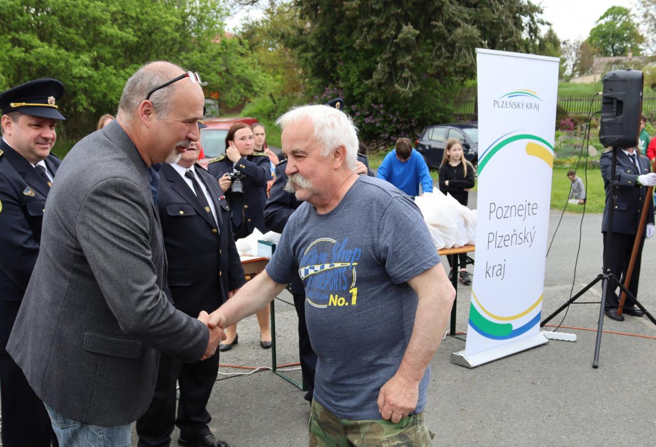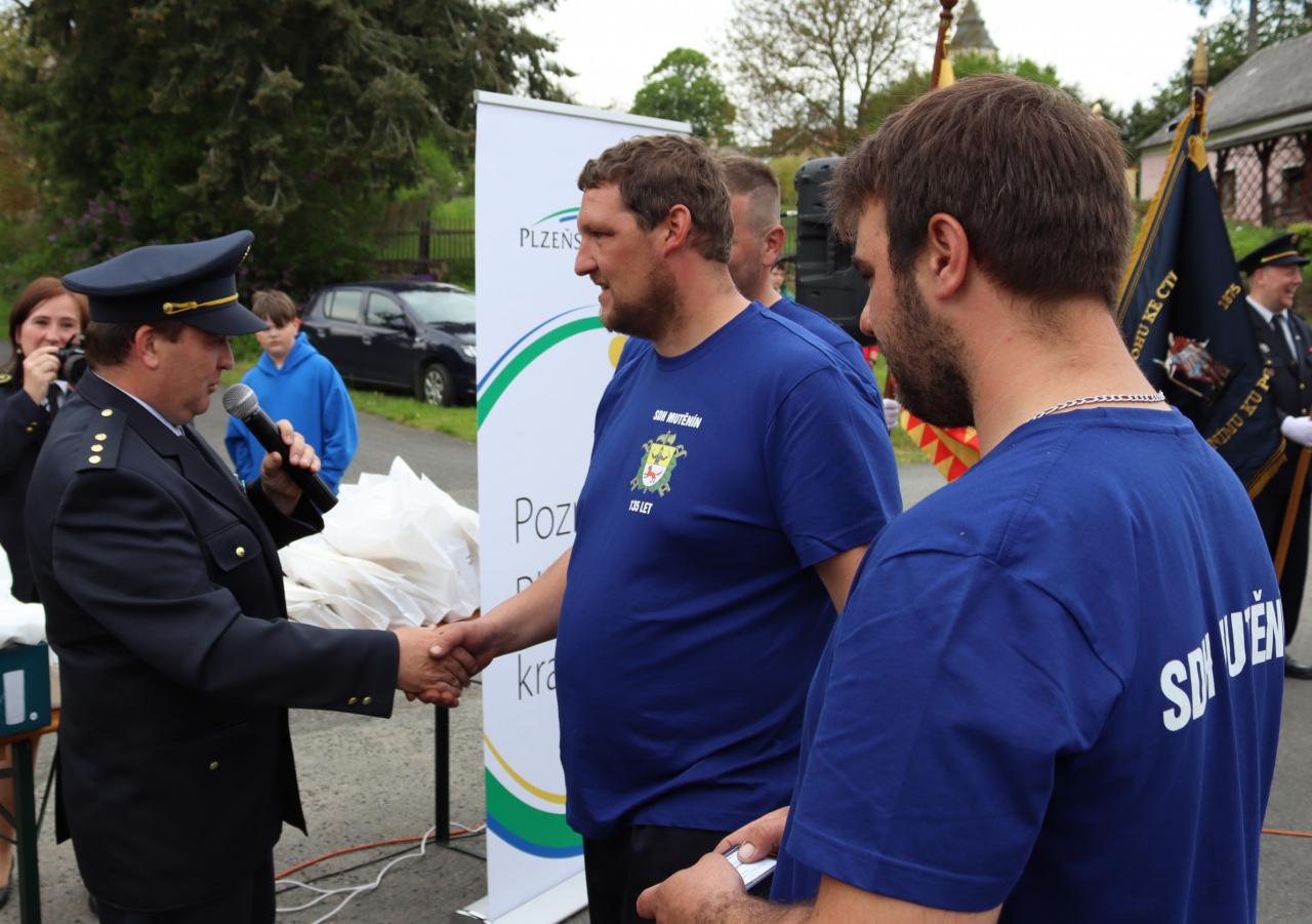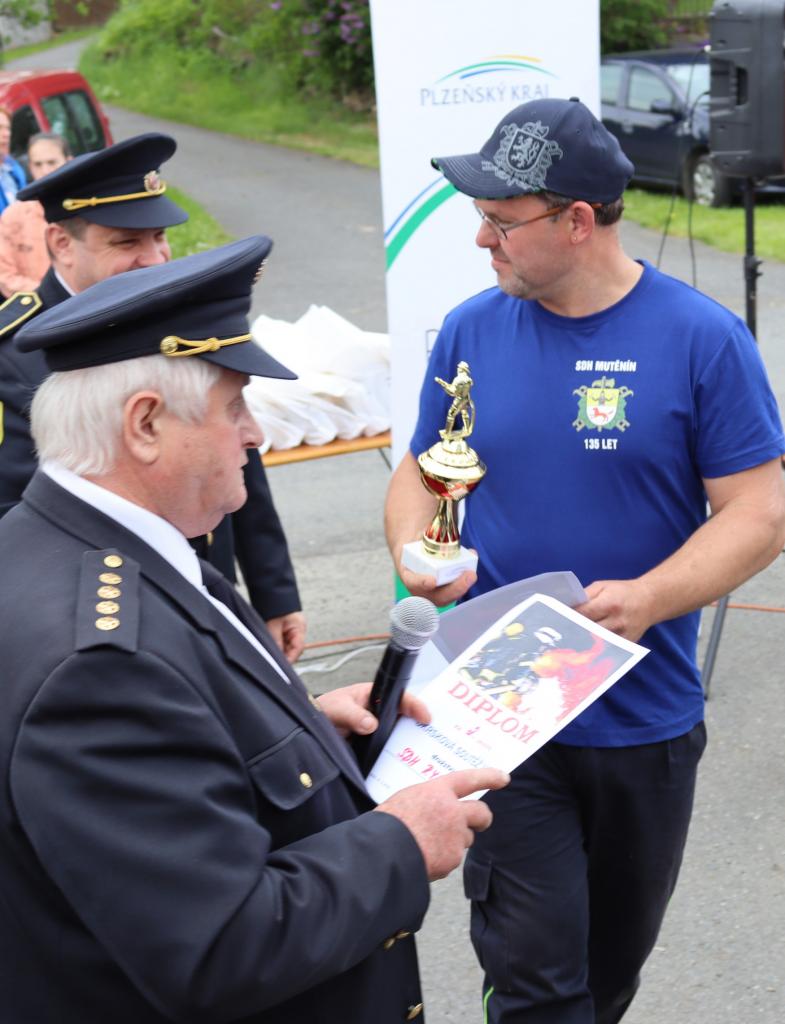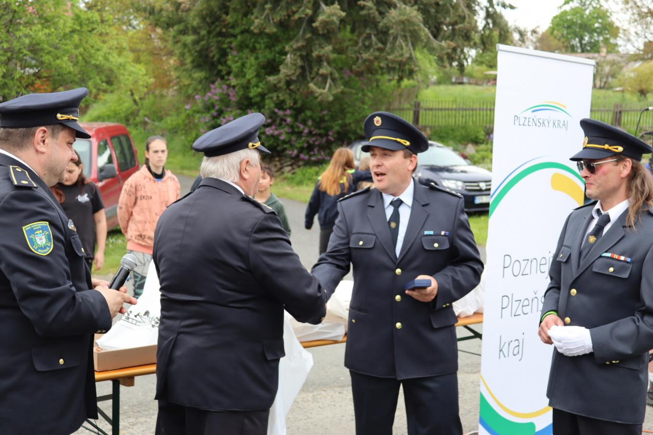 Starosta okrsku, pan Lešek se ujal slova a vyzval velitele SDH Mutěníně pana P. Pekára k předání ocenění.