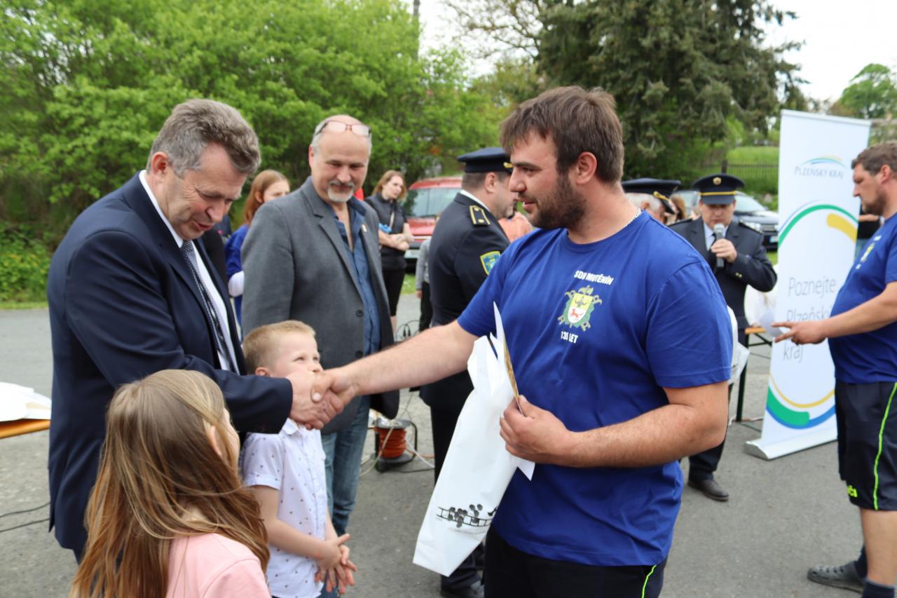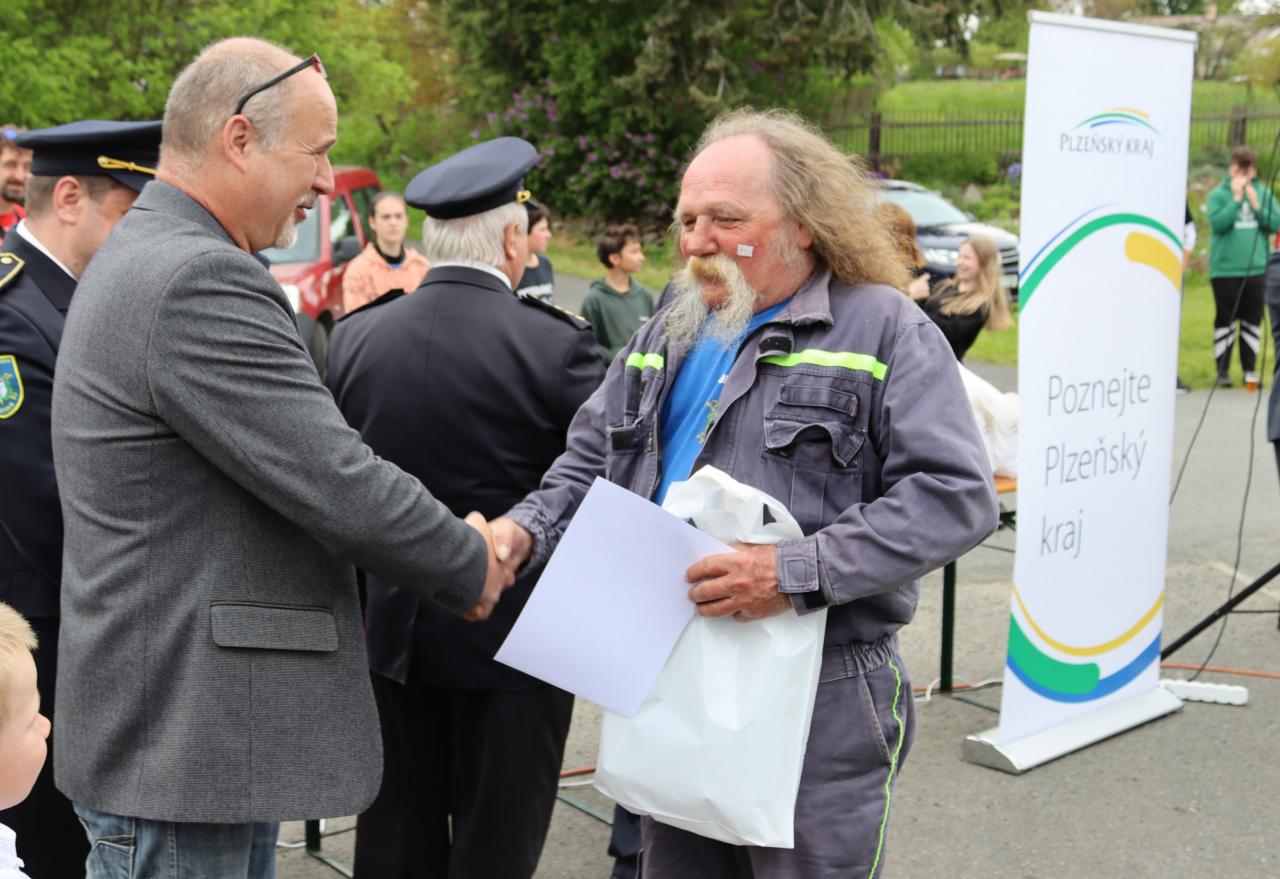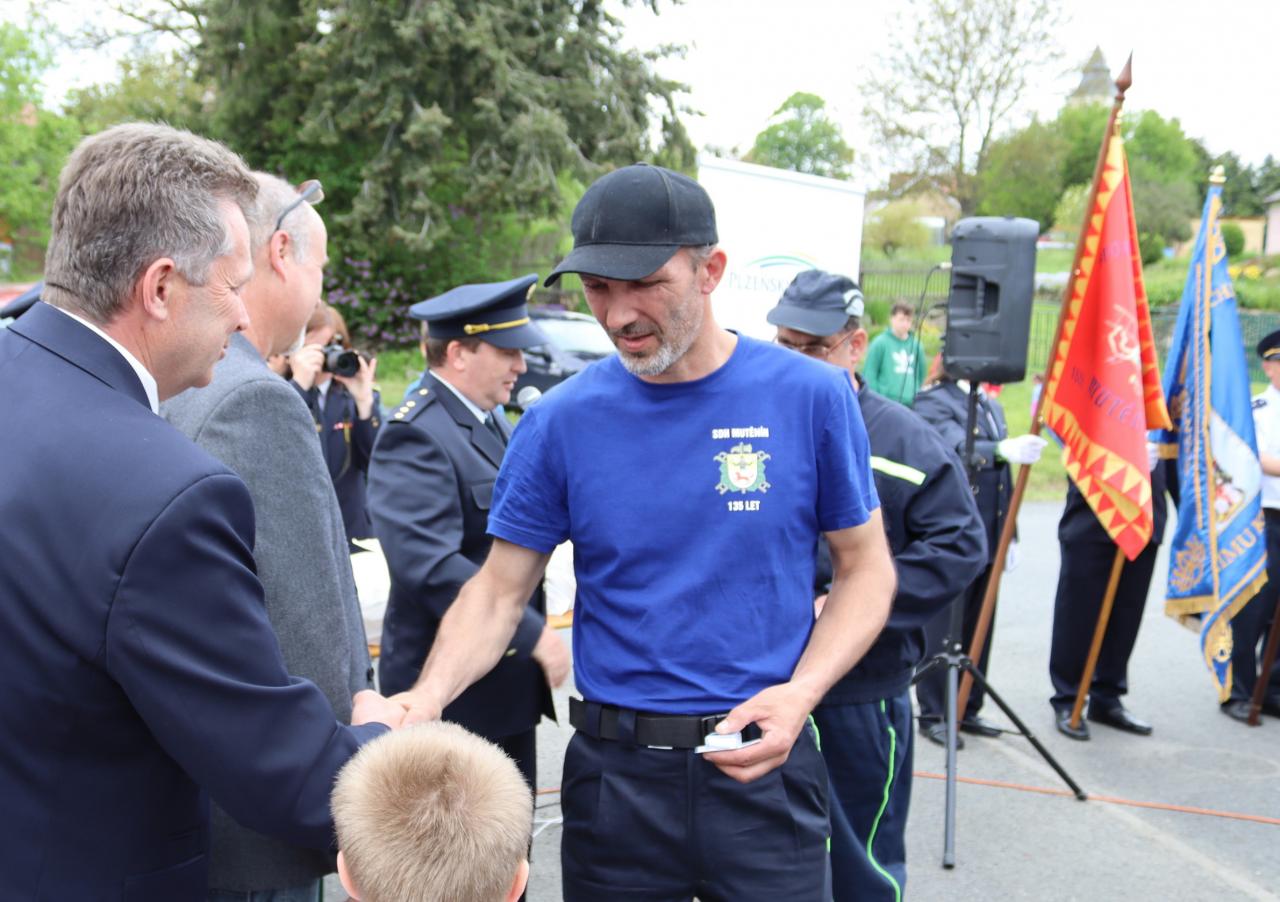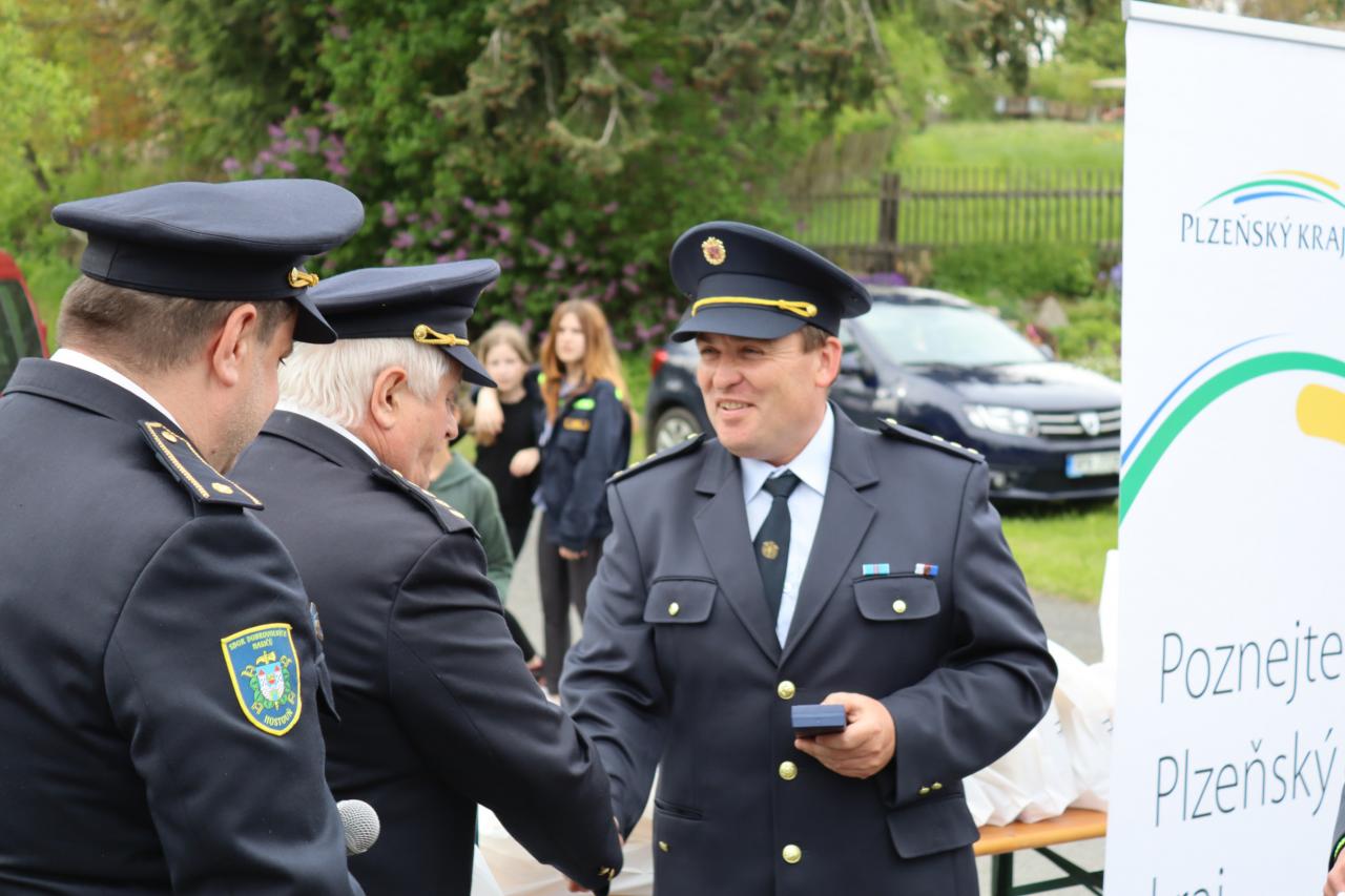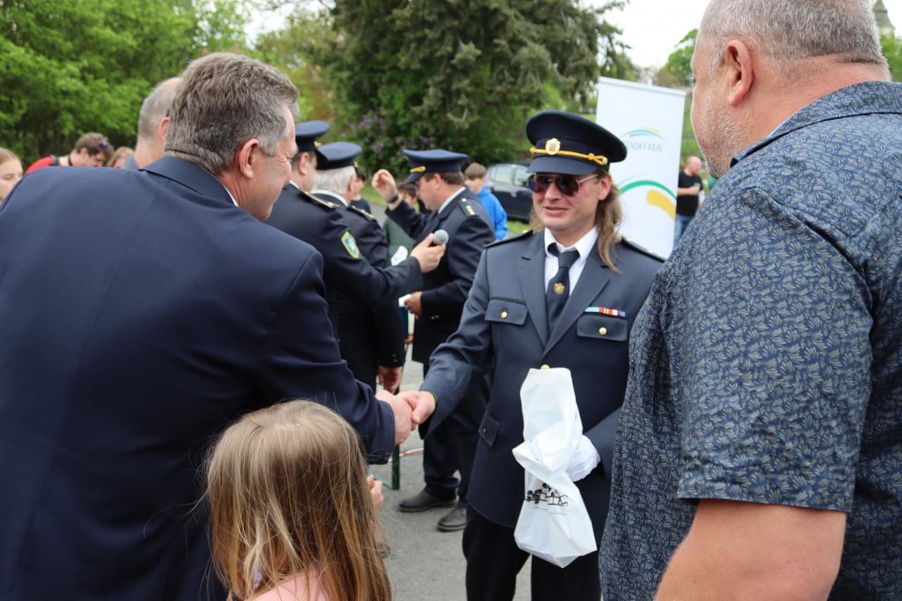 Starosta okrsku, pan Lešek se ujal slova a vyzval velitele SDH Mutěníně pana P. Pekára k předání ocenění.