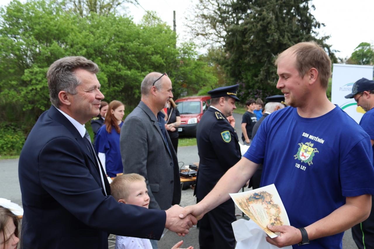 Uděleno bylo i čestné členství SDH v Mutěníně starostovi obce panu Č. Šlajsovi a místnímu živnostníkovi panu M. Fremuthovi.