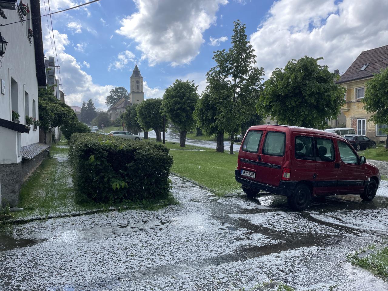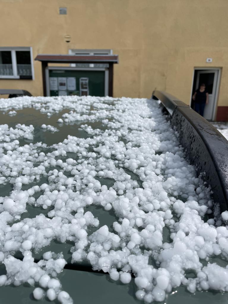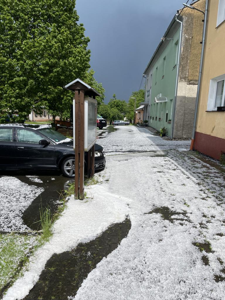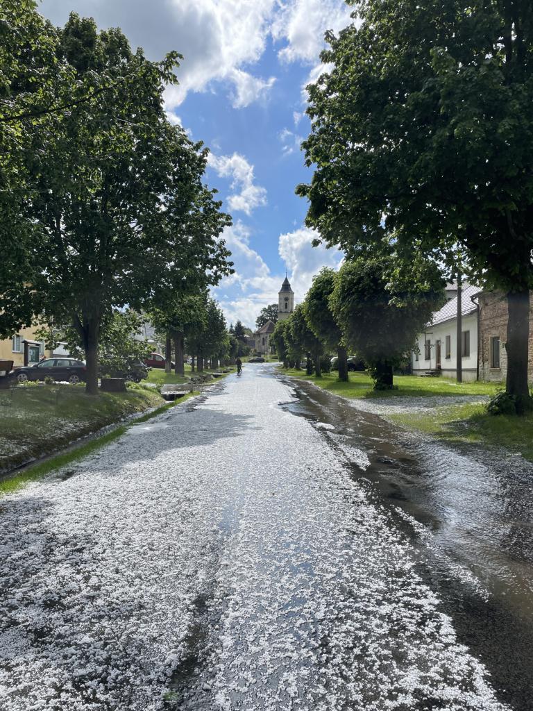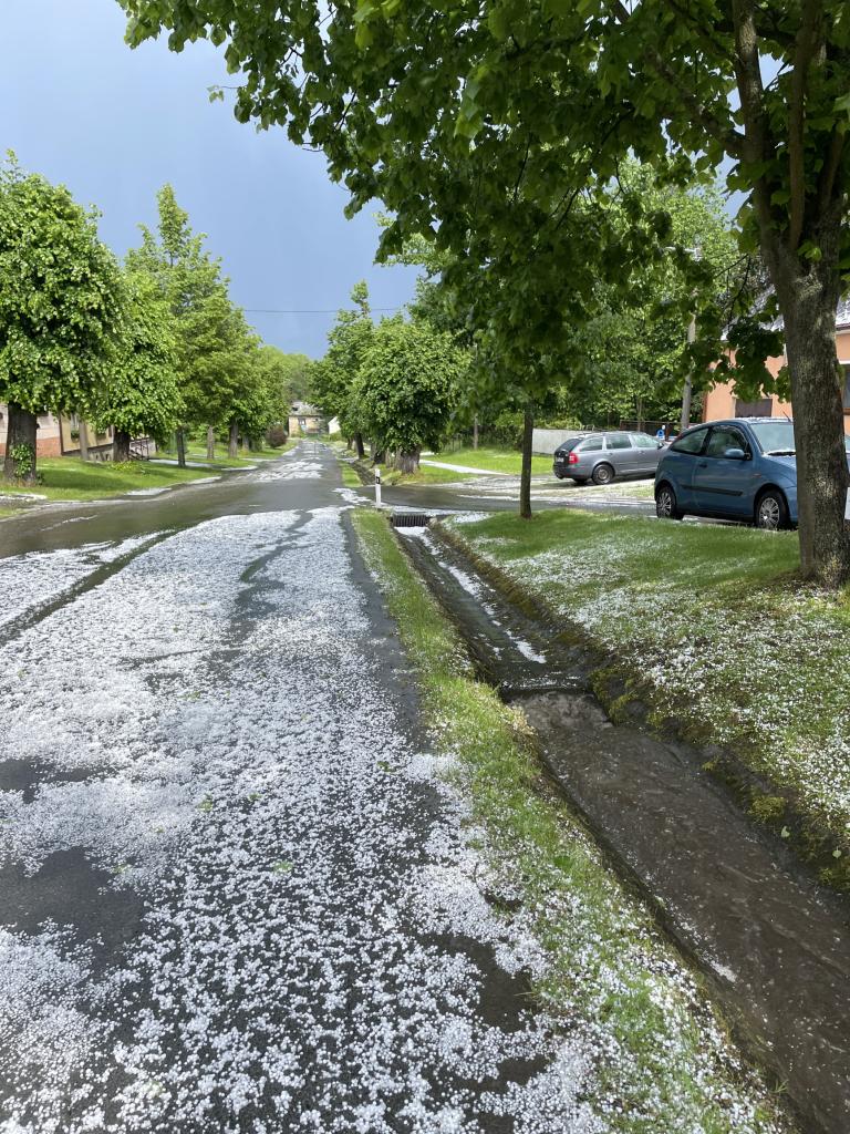 Obcí Mutěnín se v neděli odpoledne prohnala krátká bouřka s krupobitím. Během deseti minut spadlo 19mm srážek.