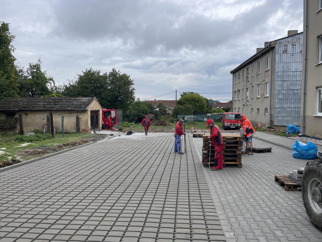 Na konci měsíce září byla dokončena jedna z největších investičních akcí za poslední léta v obci Mutěnín. Na návsi za bytovými domy bylo postaveno nového parkoviště pro 18 osobních vozidel včetně jednoho stání pro invalidy. Dále byly vystavěny nové příjezdové komunikace k parkovišti, veřejné osvětlení a nová dešťová kanalizace. Hlavním důvodem výstavby tohoto parkoviště byla kritická situace na návsi. V dnešní době, kdy má většina rodin jedno až dvě auta se při stavbě bytových domů před šedesáti lety nepočítalo. Nejhorší situace byla pod kostelem sv. Batroloměje, zde stojící auta podél hlavního průtahu obcí znemožňovala průjezd projíždějících autobusů a nákladních vozů. Dnes se může obec pochlubit návsí bez automobilů, ale plným parkovištěm, na které místní občané čekali od projektu několik let. Finančně byla tato akce pro rozpočet obce jedna z největších za poslední léta. Plzeňský kraj z dotačního titulu PSOV PK–Projekty obcí přispěl částkou 500 000,- Kč, obec Mutěnín dostala z termínovaných vkladů v letošním roce 1.000000,- Kč a zbytek se uhradil z naspořených peněz obce. Celková investice se vyšplhala na necelé tři milióny korun. Stavbu vysoutěžila a prováděla firma DYBS Plzeň s.r.o., která dílo dokončila za měsíc a půl. Děkujeme občanům za trpělivost při stavbě, ale i dodavatelské firmě za rychlost a dobře odvedenou práci.