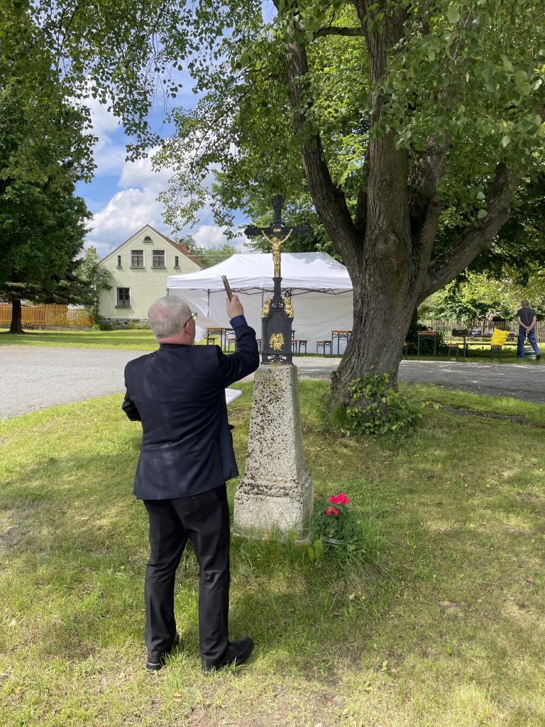 Obec Mutěnín za podpory z Plzeňského kraje přestěhovala a zrenovovala památný kříž při silnici do Starého Kramolína. Původní místo kříže bylo u staré cesty nad střelnicí. Po skončení se procesí vydalo do St. Kramolína. Zde se opětovně požehnalo kříž, ale i všem lidem.