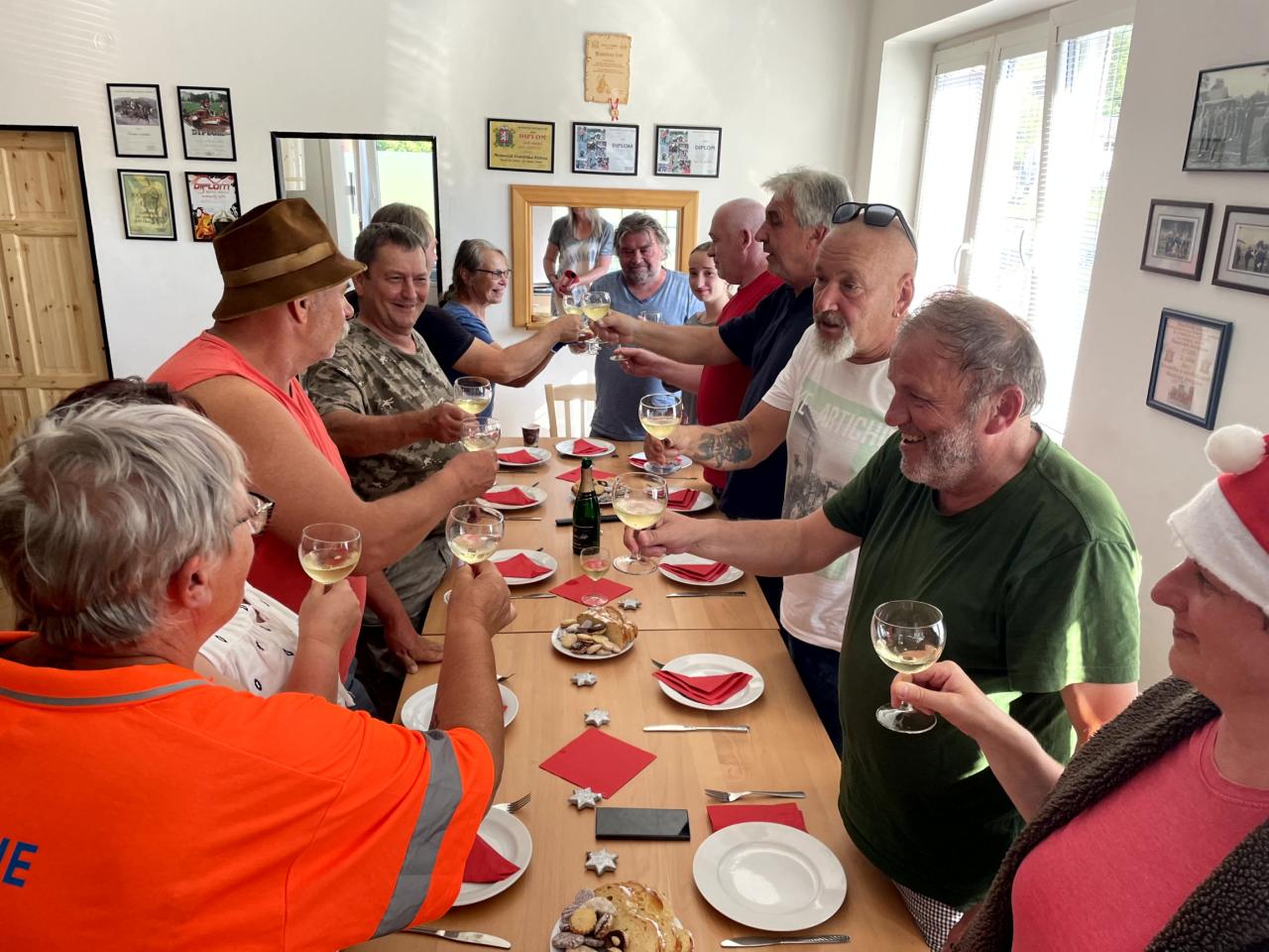 Start byl na návsi od pomníku a pokračoval přes travou zarostlou náves okolo kostela k hasičské zbrojnici. Zde na účastníky čekal zasloužený cíl a skupinová fotka se sněhulákem. K Vánocům ale patří i vánoční stromeček, štědrovečerní večeře a smažený kapr se salátem. Ten se rozvoněl při otevření vchodových dveří do hasičské klubovny. Vánoční tabule byla dokonalá a nechyběla ani vánočka s cukrovím. Úspěchem ale bylo i to, že nikomu nezaskočila kostička, a tak se celé osazanstvo po večeři podívalo v klidu a v pohodě, jak to bývá zvykem na vánoční pohádku "Tři oříšky pro Popelku".