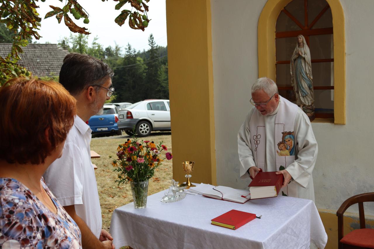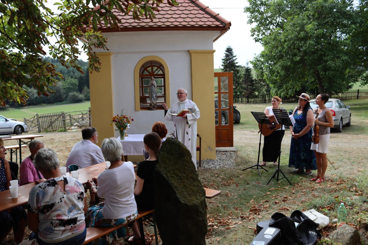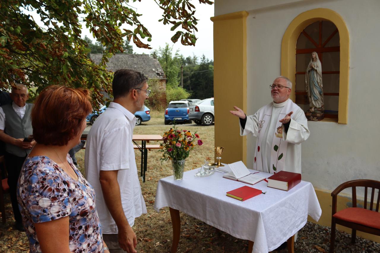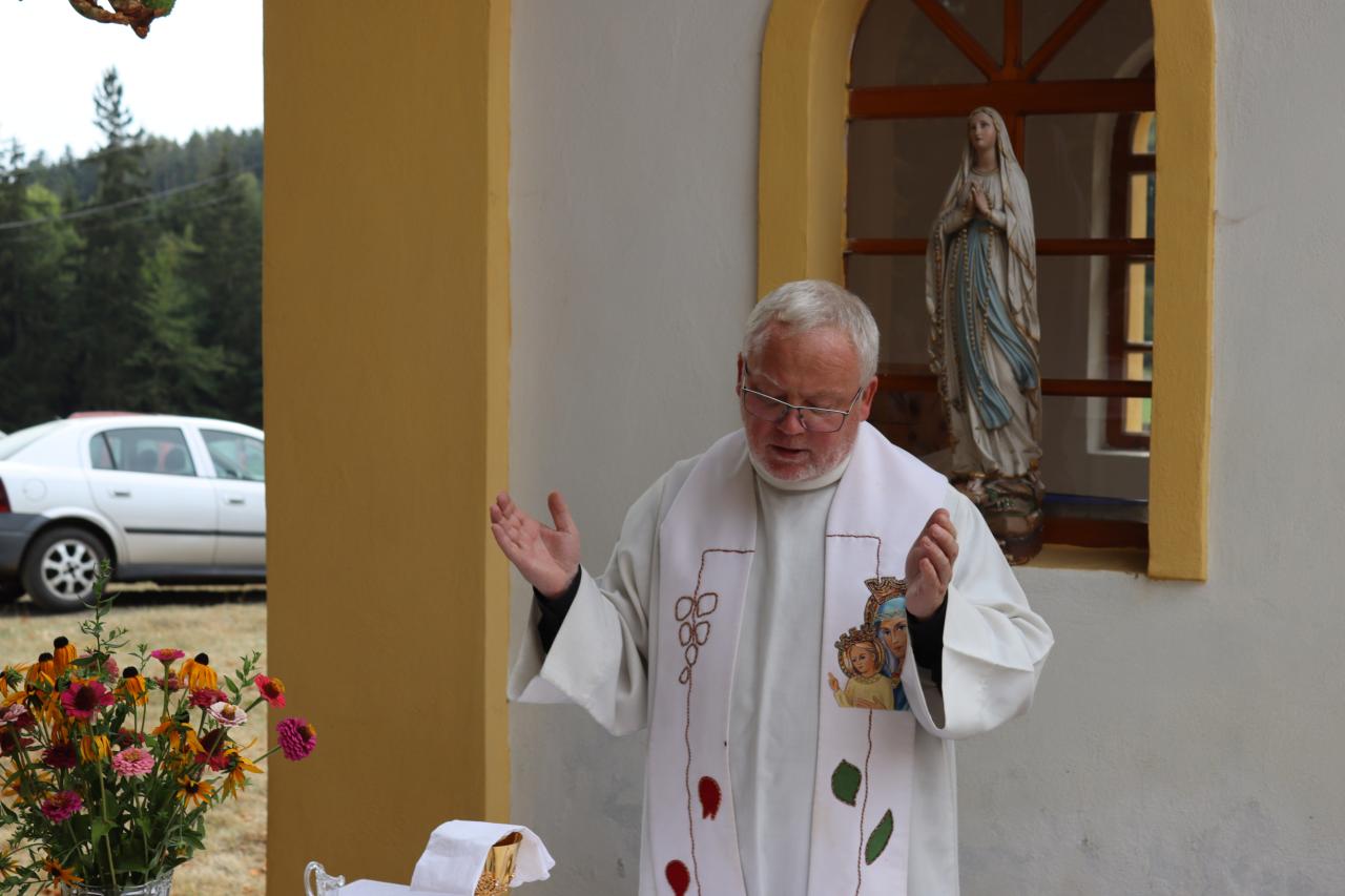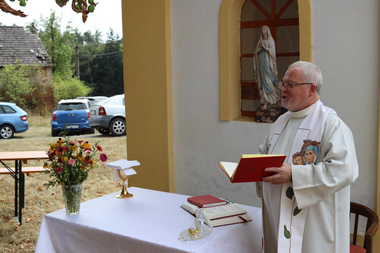 V neděli 8.9. 2024 od 14.00 hod. se uskutečníla za krásného počasí pouťní mše u kaple Panny Marie na Erazimu. Mši svatou vedl P. ThLic. Miroslaw Gierga a vznešenost této akce dokreslila i přítomnost Mons. Emila Soukupa.