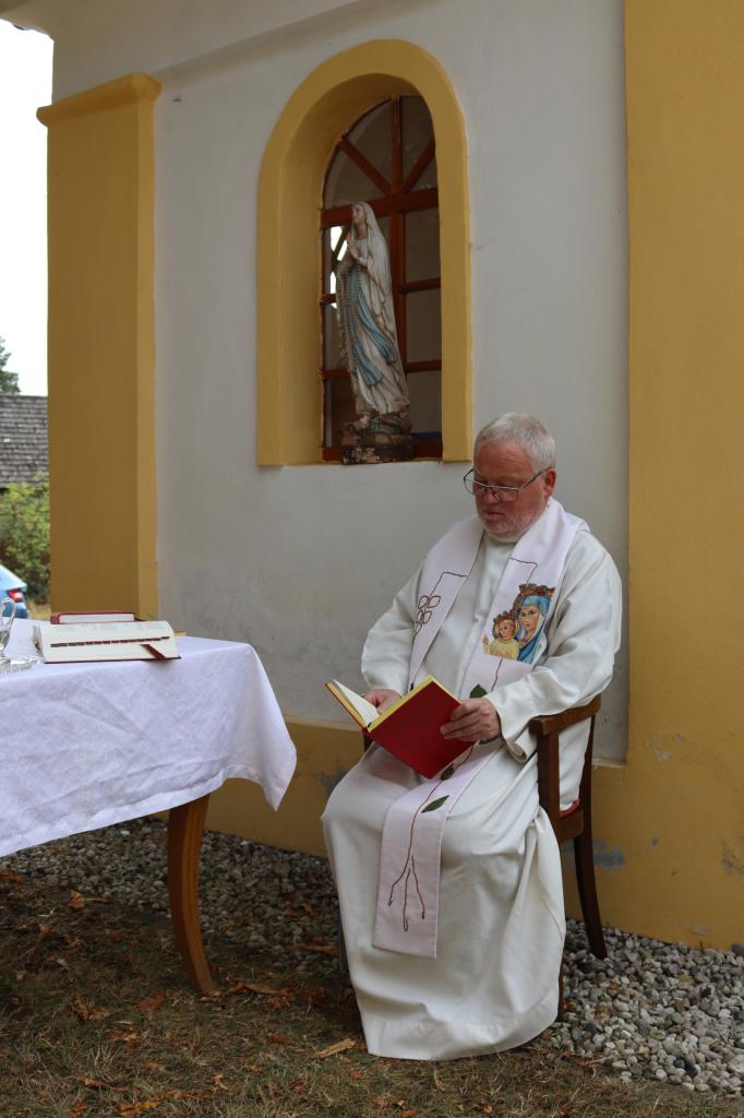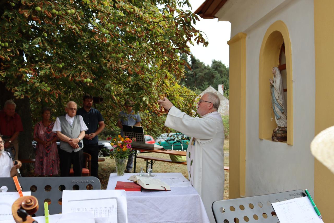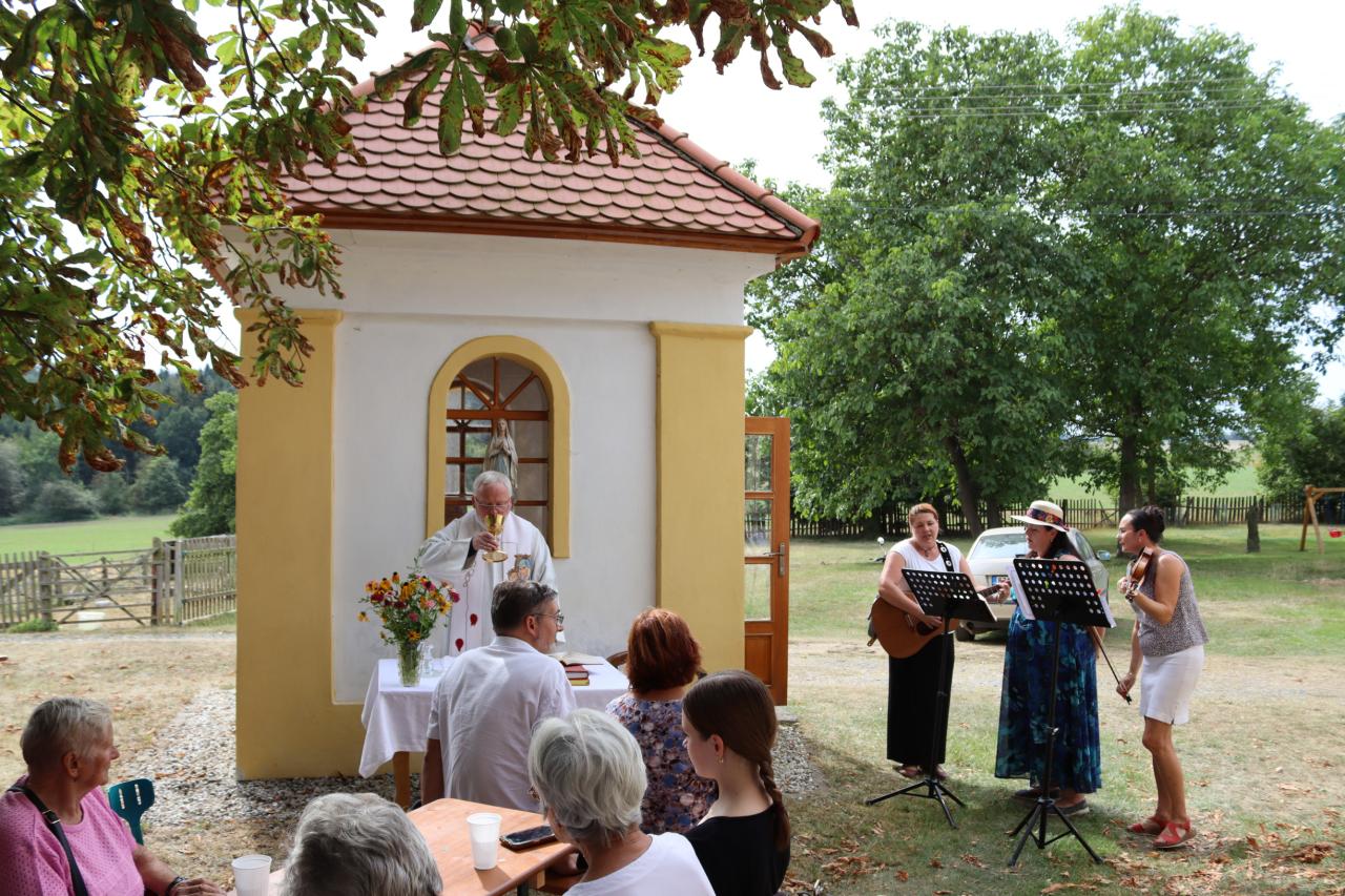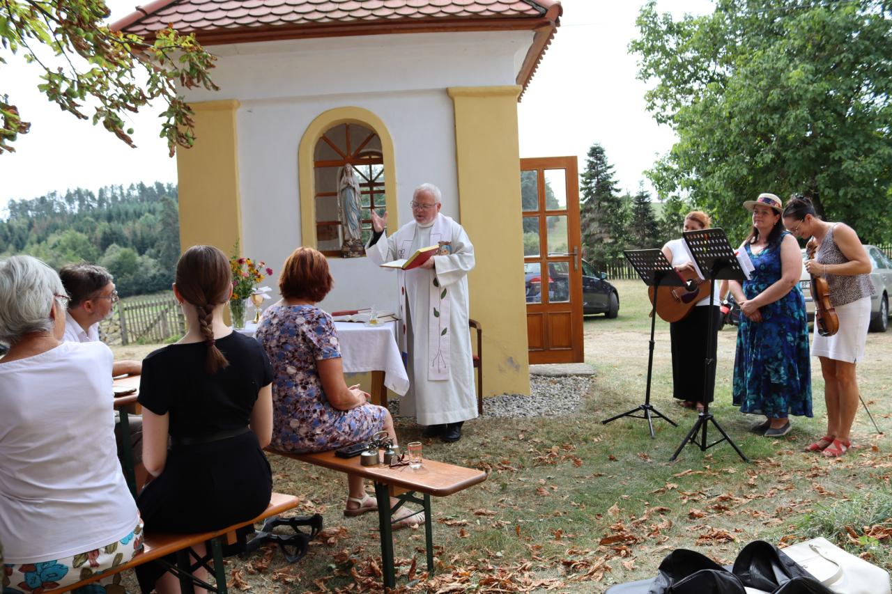 V neděli 8.9. 2024 od 14.00 hod. se uskutečníla za krásného počasí pouťní mše u kaple Panny Marie na Erazimu. Mši svatou vedl P. ThLic. Miroslaw Gierga a vznešenost této akce dokreslila i přítomnost Mons. Emila Soukupa.