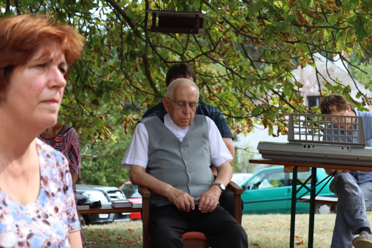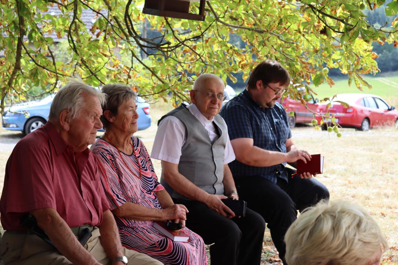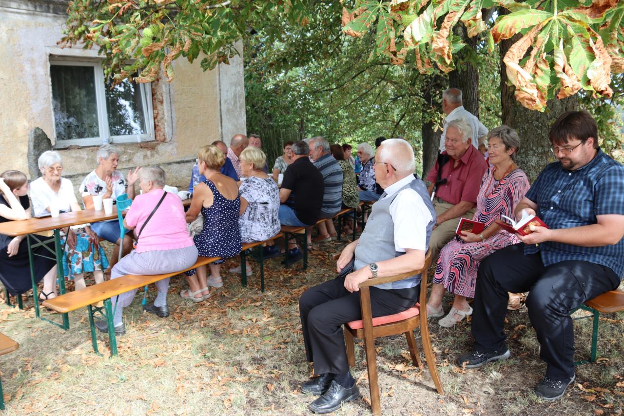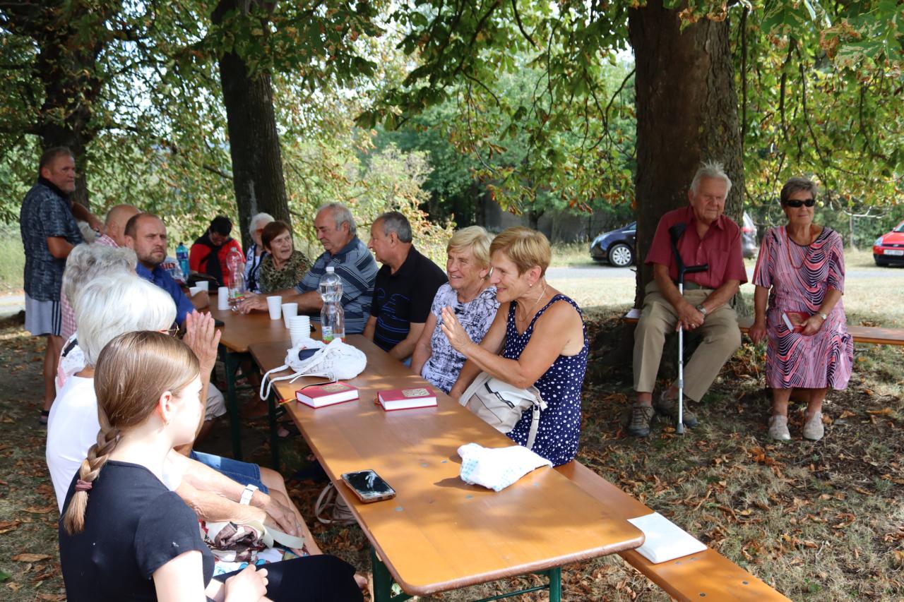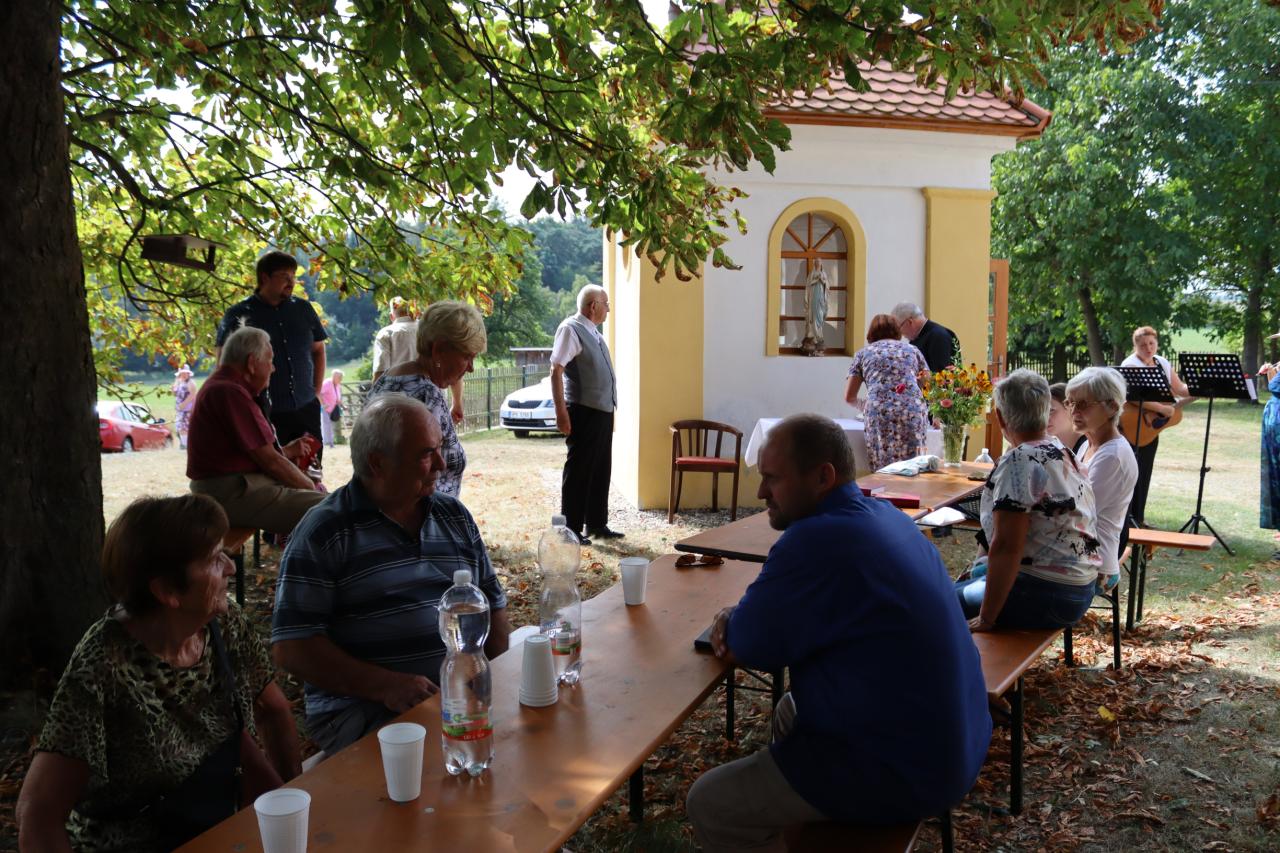V neděli 8.9. 2024 od 14.00 hod. se uskutečníla za krásného počasí pouťní mše u kaple Panny Marie na Erazimu. Mši svatou vedl P. ThLic. Miroslaw Gierga a vznešenost této akce dokreslila i přítomnost Mons. Emila Soukupa.