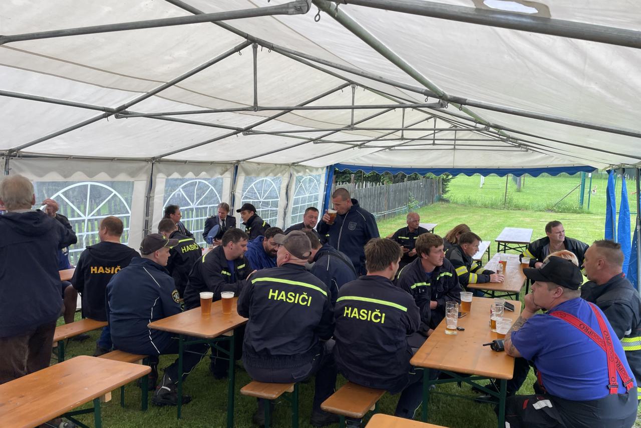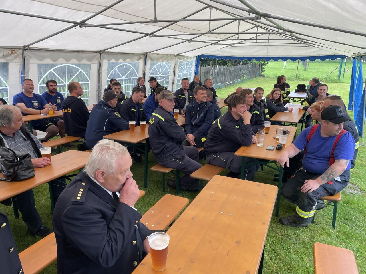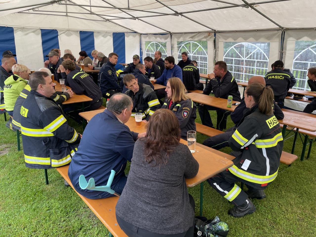 Na začátku pronesl krátký proslov starosta obce pan Č. Šlajs. Zdůraznil, že si všichni vážíme náročné práce hasičů a patří jim velký dík za činnost, kterou dělají pro své města a obce. Veškerá setkání se sbory probíha na soutěžích nebo schůzích, kde si nemohou v klidu popvídat, nebo vyměnit zkušenosti a pochlubit se technikou. Z tohoto důvodu byly pozvány na přátelské posezení a bylo navrženo scházet se každým rokem v jiné obci.