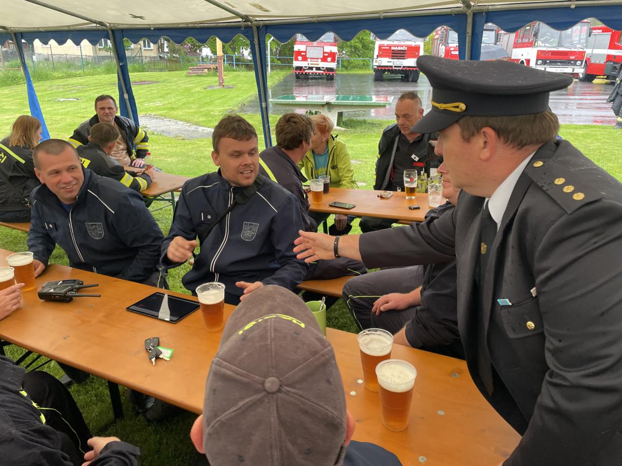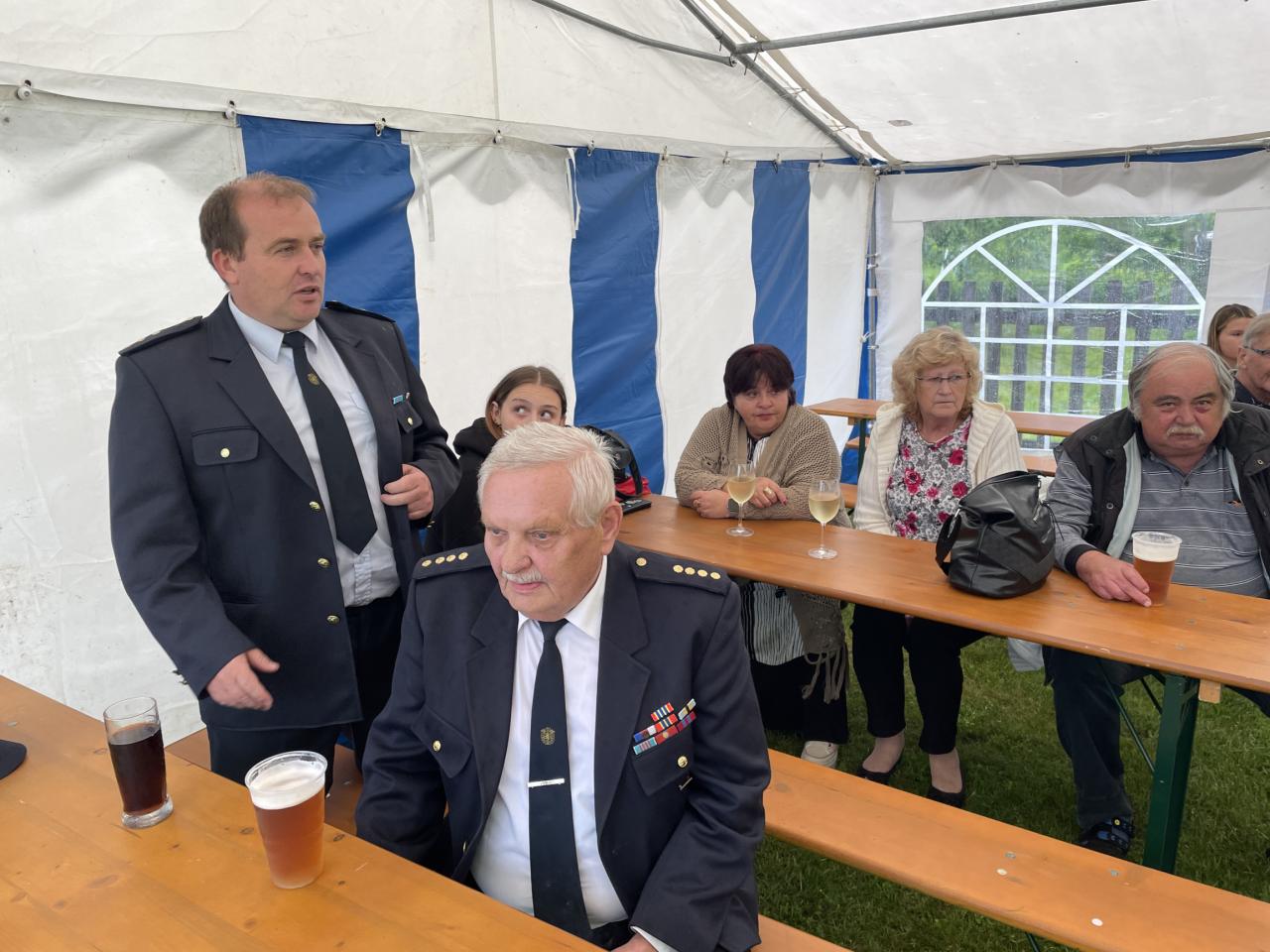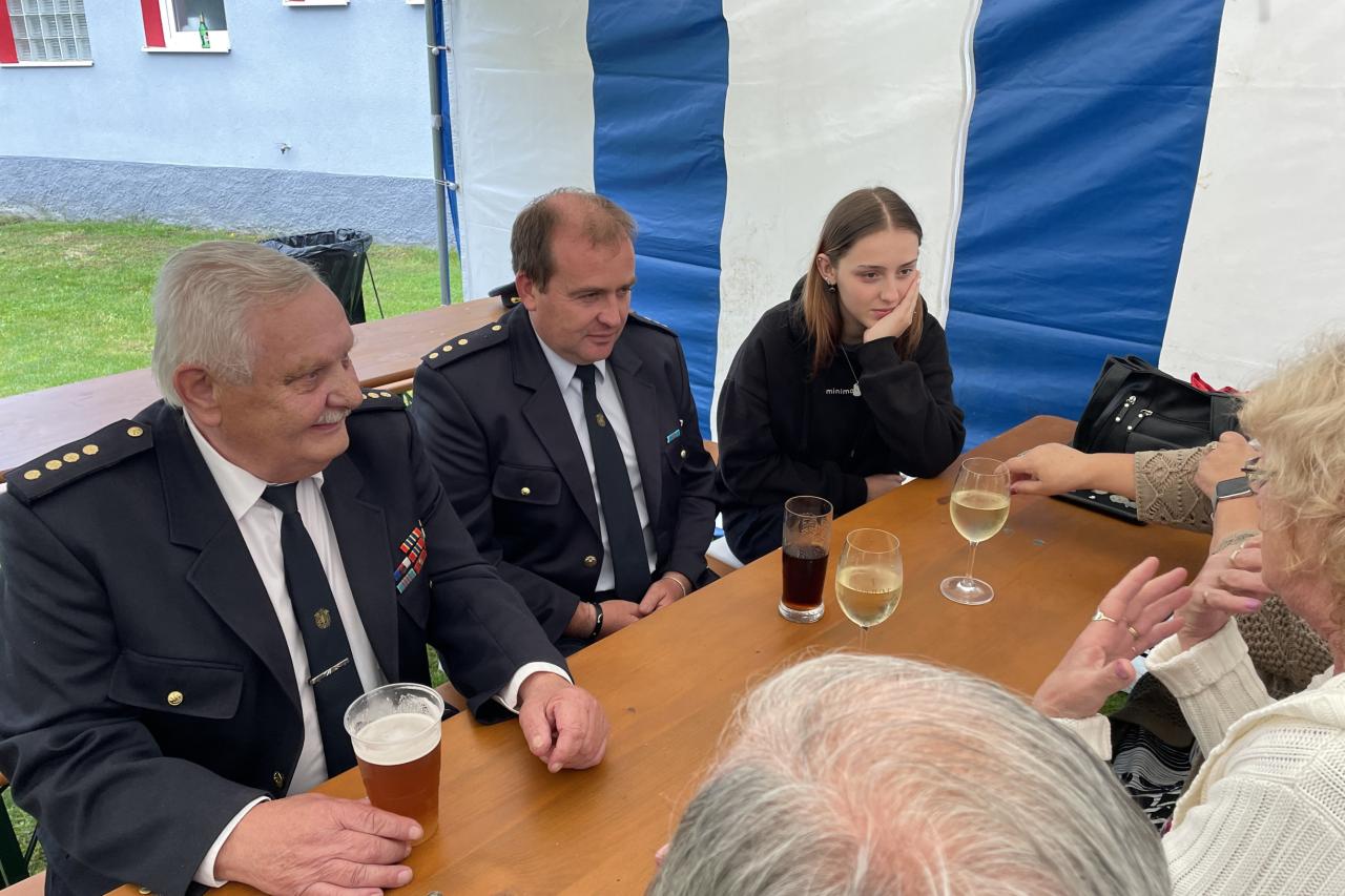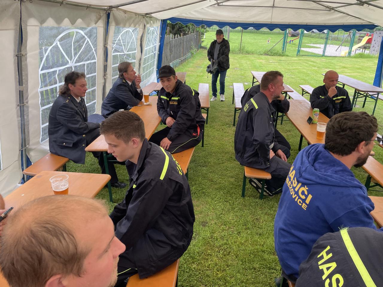 Na začátku pronesl krátký proslov starosta obce pan Č. Šlajs. Zdůraznil, že si všichni vážíme náročné práce hasičů a patří jim velký dík za činnost, kterou dělají pro své města a obce. Veškerá setkání se sbory probíha na soutěžích nebo schůzích, kde si nemohou v klidu popvídat, nebo vyměnit zkušenosti a pochlubit se technikou. Z tohoto důvodu byly pozvány na přátelské posezení a bylo navrženo scházet se každým rokem v jiné obci.