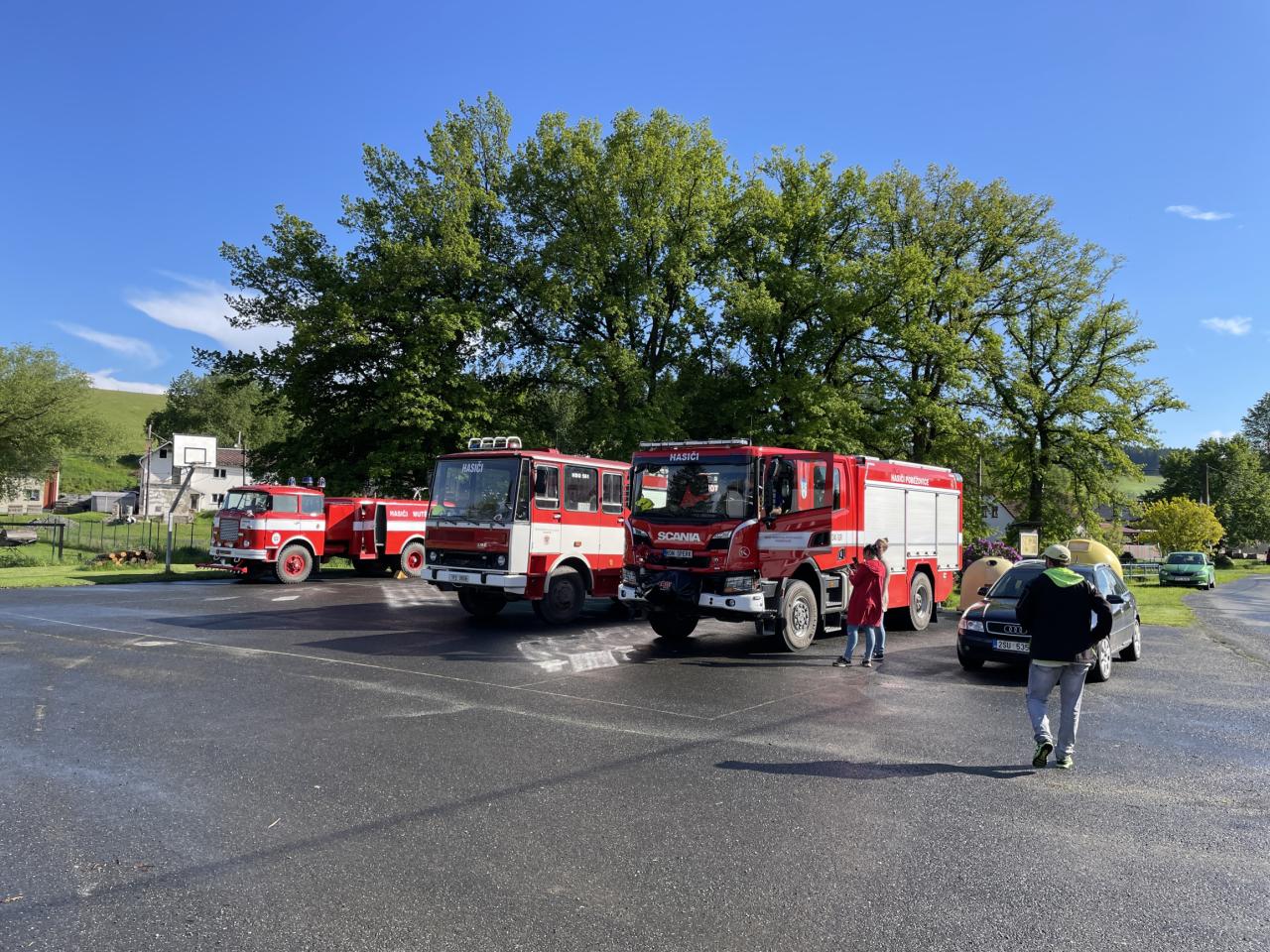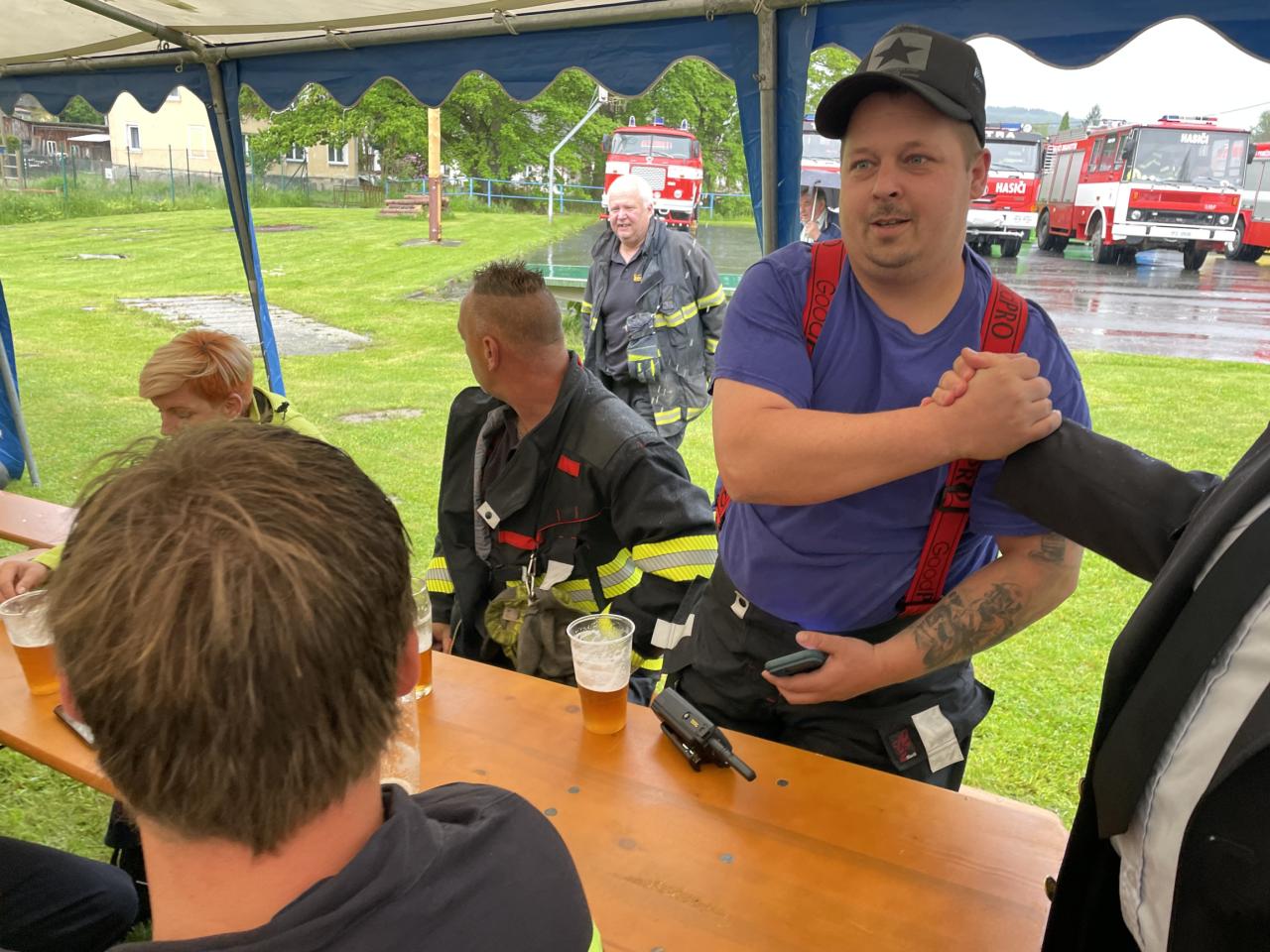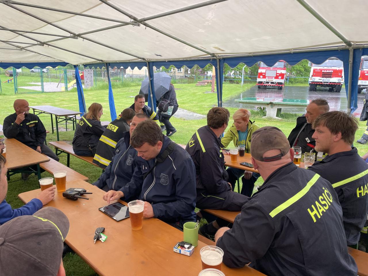 Na začátku setkání se hlavně probíralo semifinálové utkání na mistrovství světa v ledním hokeji, kdy náš tým sehrál se Švédy výtězné utkání. Ale dostalo se i na diváky, kterých se za deště přišlo pár skupinek podívat. Za odměnu se svezli hasičským vozem dle jejich výběru.