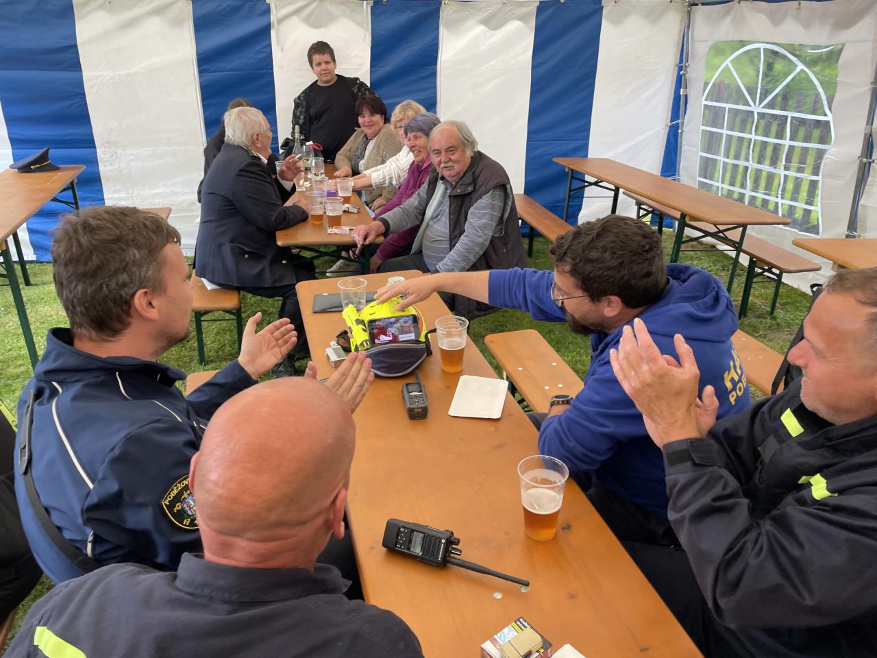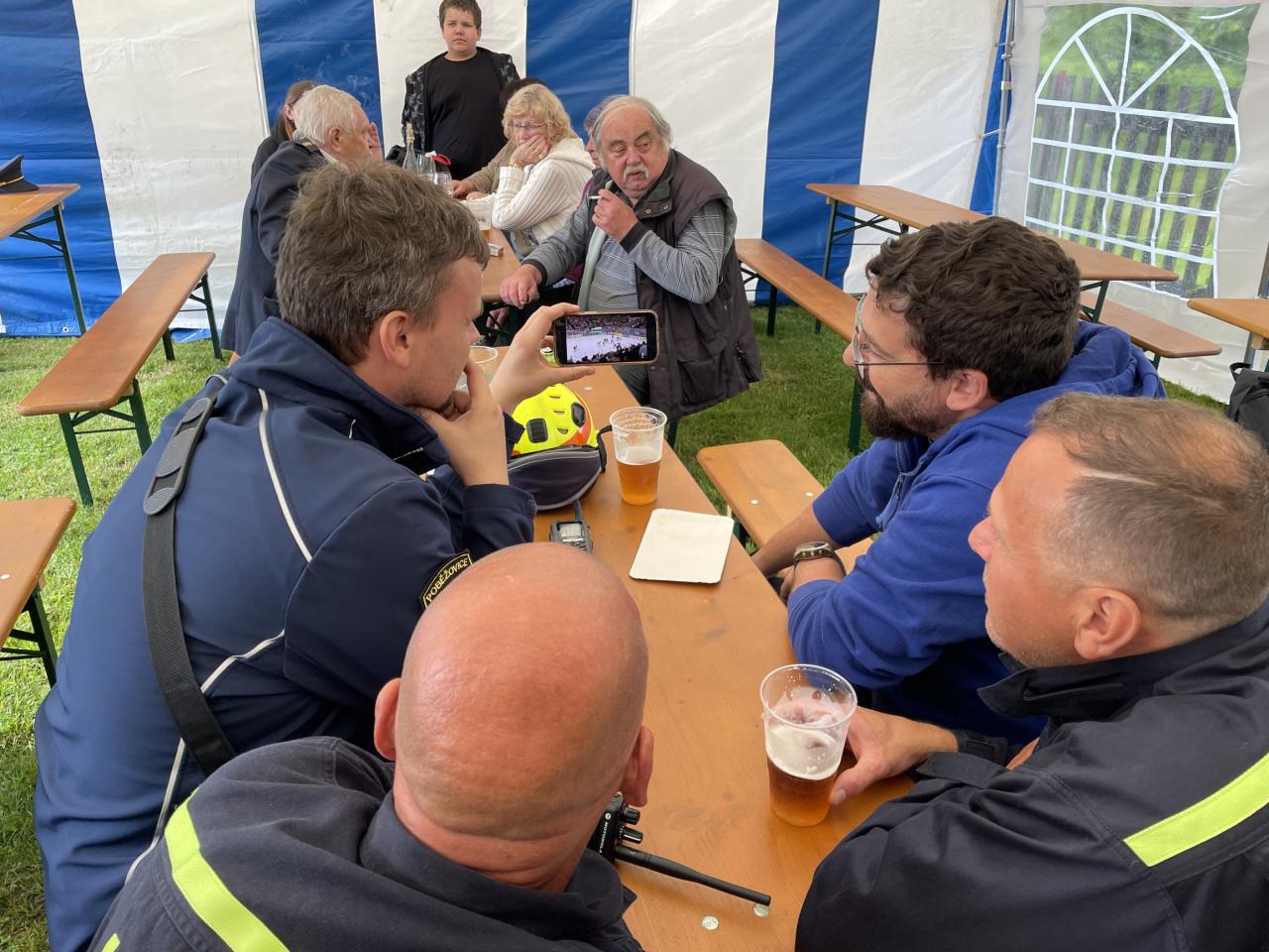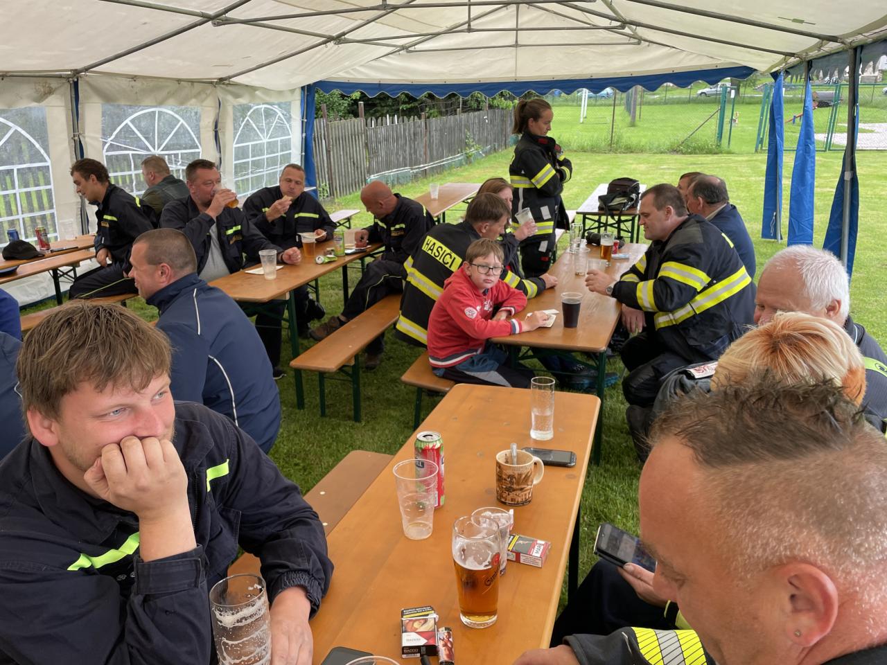 Na začátku setkání se hlavně probíralo semifinálové utkání na mistrovství světa v ledním hokeji, kdy náš tým sehrál se Švédy výtězné utkání. Ale dostalo se i na diváky, kterých se za deště přišlo pár skupinek podívat. Za odměnu se svezli hasičským vozem dle jejich výběru.