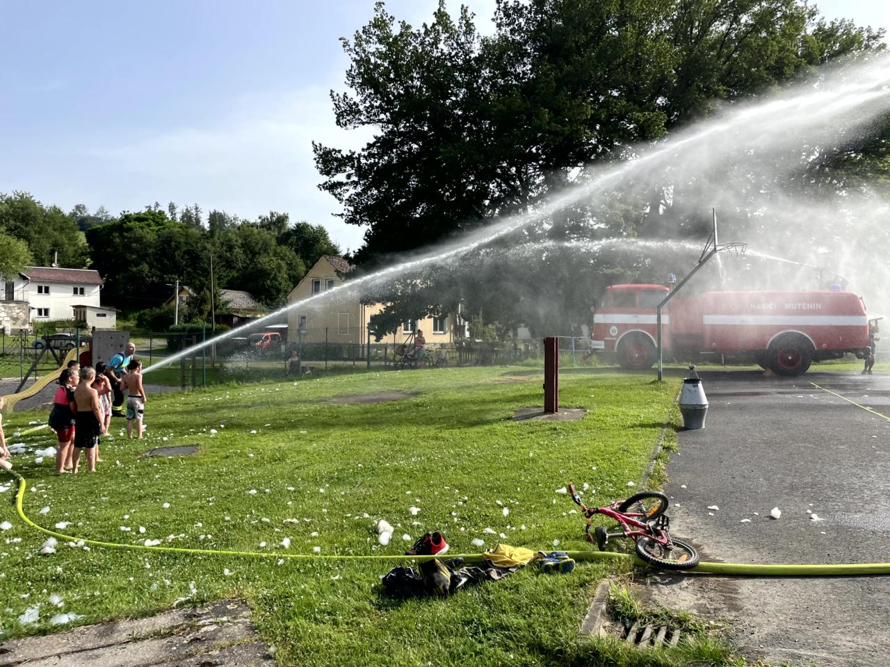 V sobotu 29.6. 2024 se uskutečnila akce pro děti „Vítání prázdnin“ – cesta za pokladem Černého korzára a hledání pirátského pokladu. Začátek byl ve Starém Kramolíně na návsi a pokračovalo se cestou do Mutěnína, kde děti plnily připravené úkoly. Luštily jméno ostrova kde piráti zakopali poklad. Po náročné cestě, kdy teploty přesahovaly +33 stupňů a vyluštěním jména ostrova s pokladem si děti a jejich doprovod odpočinul pod velkým dubem na zahradě OÚ v Mutěníně. Zde se také nacházel bájný ostrov, a vytoužený poklad s občerstvením. Po krátkém odpočinku se děti opětovně zapojily do připravených soutěží a her, a za každý splněný úkol dostaly do připravené pirátské truhličky část pokladu. Ale to hlavní překvapení bylo u hasičské zbrojnice. Zde na děti čekali naši hasiči s vodou a hasiči z Hostouně kteří nastříkali pěnu. Ta udělala dětem velikou radost. Vše se ale nakonec zvrhlo v nelítostný souboj jednotek, kdo bude víc mokrý. Ten ale nikdo nevyhrál. Mokří byli všichni. Poslední překvapení pro děti se uskutečnilo ve večerních hodinách na návsi u kostela. Zde byl odpálen ohňostroj u příležitosti zahájení prázdnin, ale i za neuskutečněný Dětský den. Ohňostroj sponzorovala rodina Váchalova z Ostrova, které děkujeme za krásný zážitek.