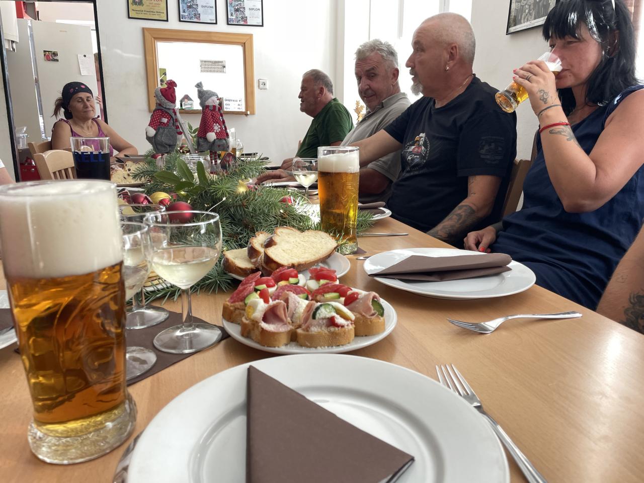 Příznivci recese v Mutěníně se sešli v úterý 24.6. 2025 na návsi u pomníku, aby si připomenuli 1/2 roku do vánoc. Závod byl ukončen u hasičské zbrojnice. Následoval slavnostní přípitek, večeře ale i volná zábava za doprovodu živé muziky. Zde je pár postřehů.