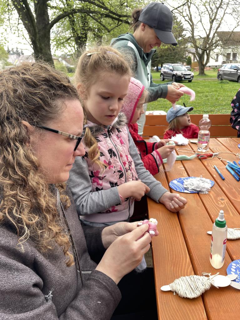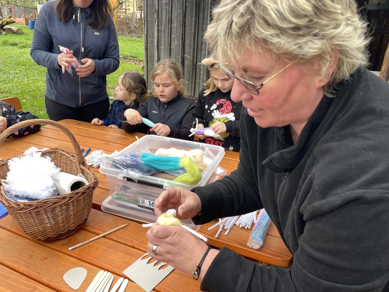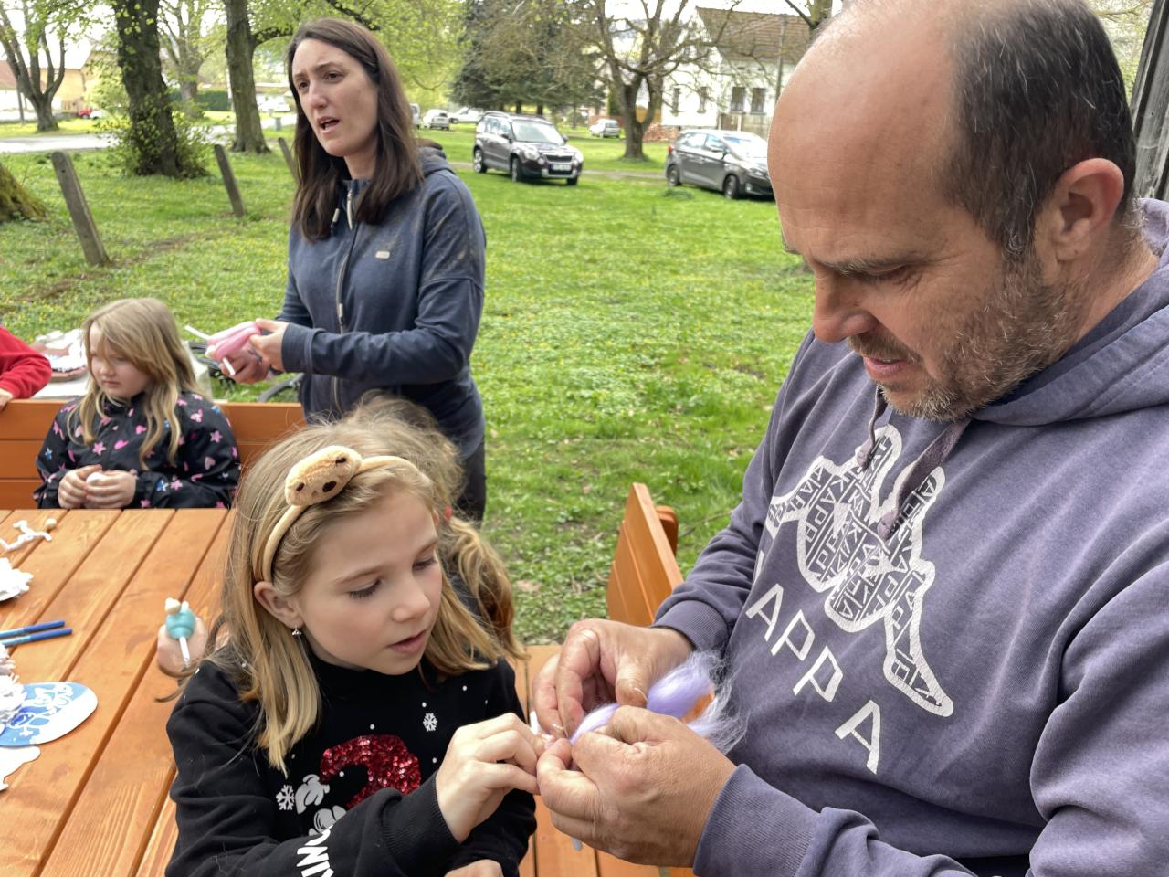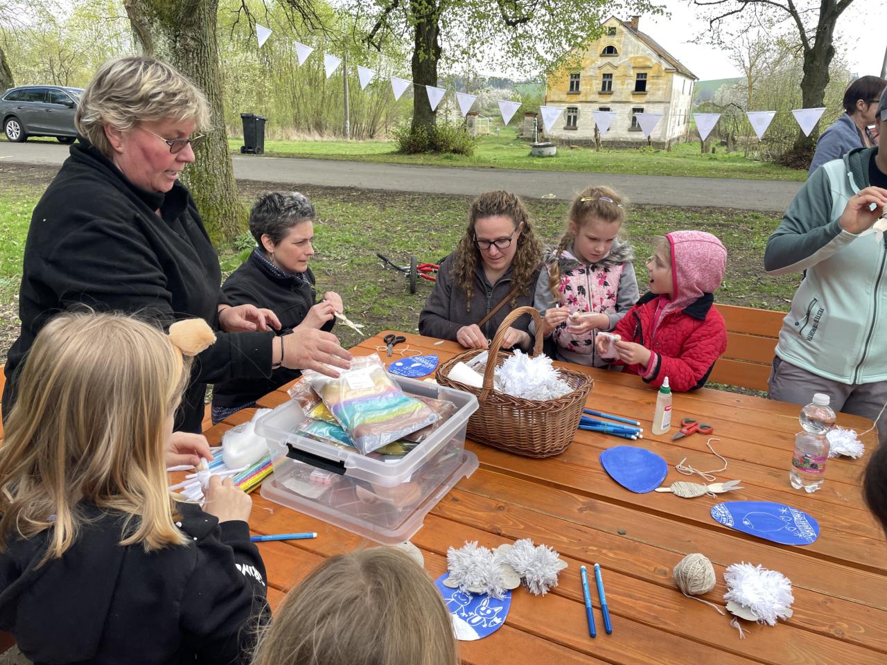 V sobotu se sešly děti, ale i rodiče ve Starém Kramlíně na návsi, kde proběhla "Jarní dílnička". Děti vyráběly víly z příze a zajíčky.