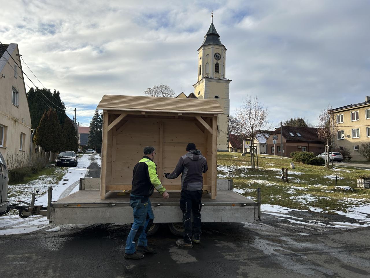 V pátek 28. listopadu a v sobotu 29. listopadu 2025 proběhla tradiční stavba vánočního stromečku a instalace Betléma.