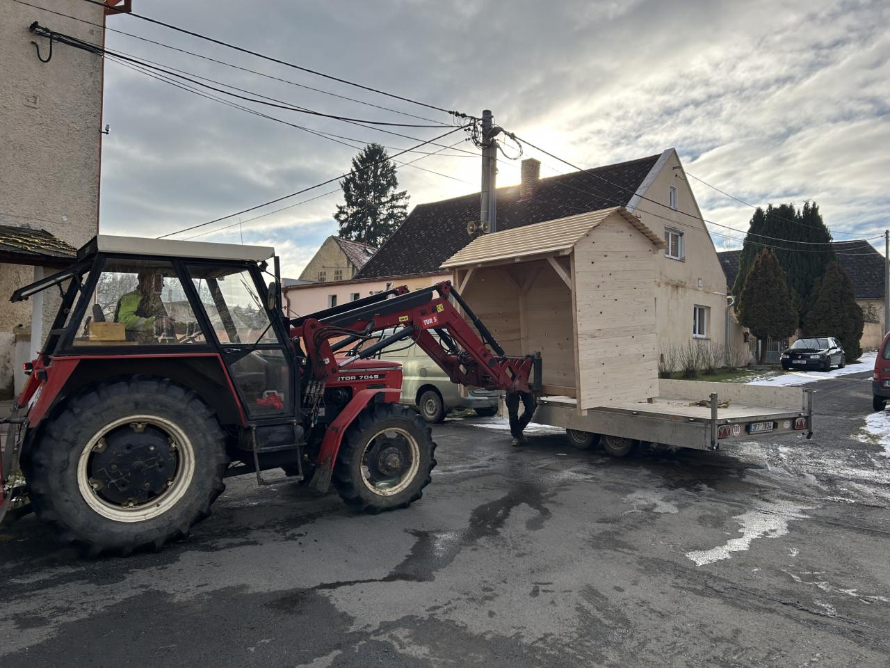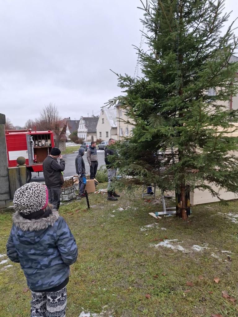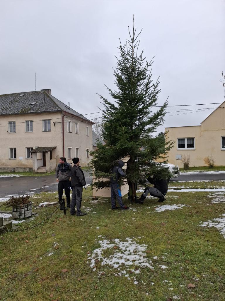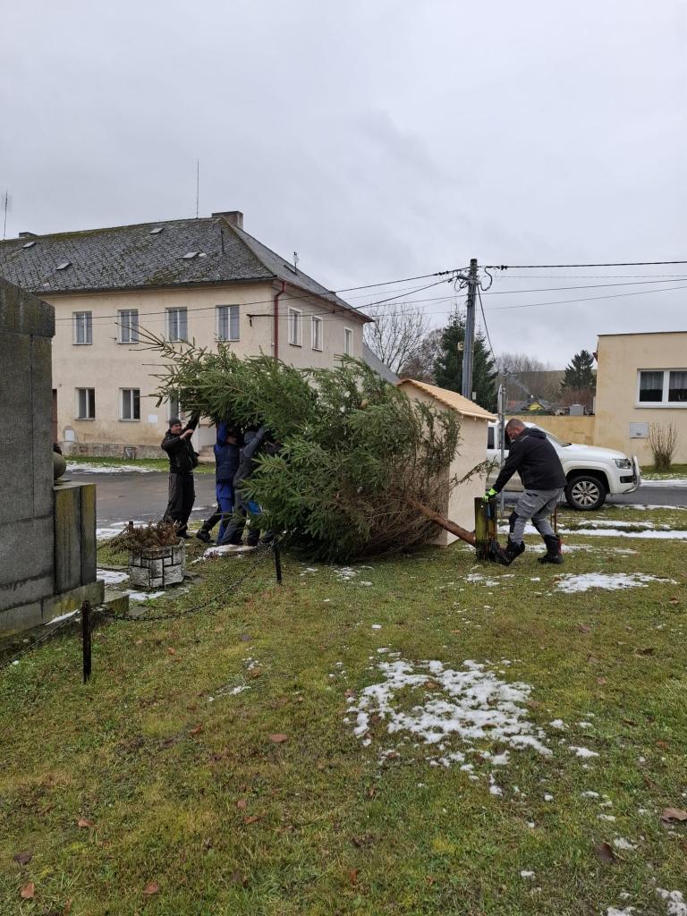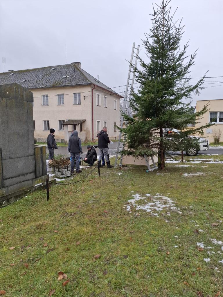 Stavba vánočního stromečku a instalace Betléma v Mutěníně