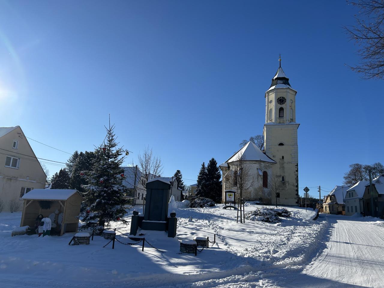 V pátek 9.1. 2026 se konečně ozvala zima a za dva dny nasněžilo okolo 25 cm sněhu. Je neděle, nádherné počasí a zde je pár postřehů z naší obce.