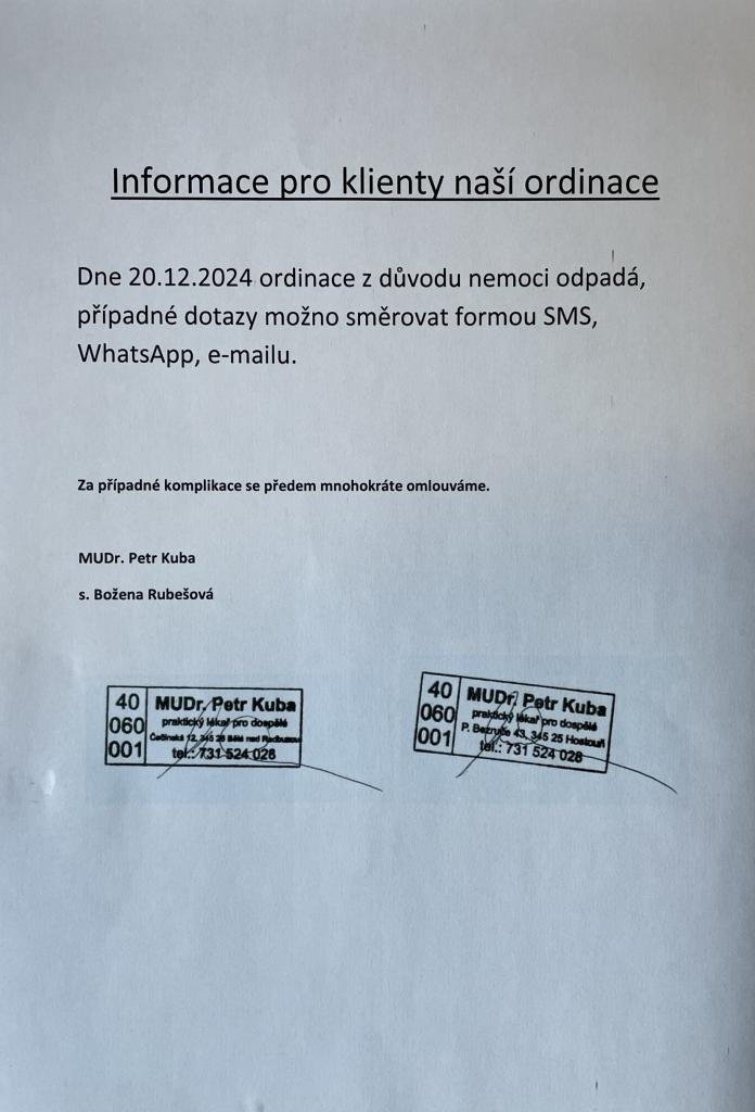 Informace pro klienty ordinace - MUDr. Kuba
